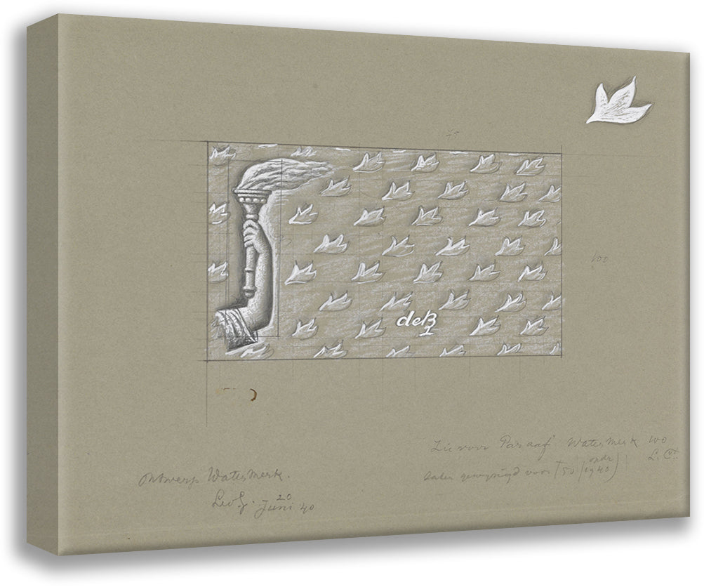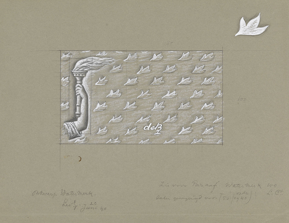 / Design for a Watermark of a Banknote; a Hand with Torch, in a Background of Leaves (1940-06-20)