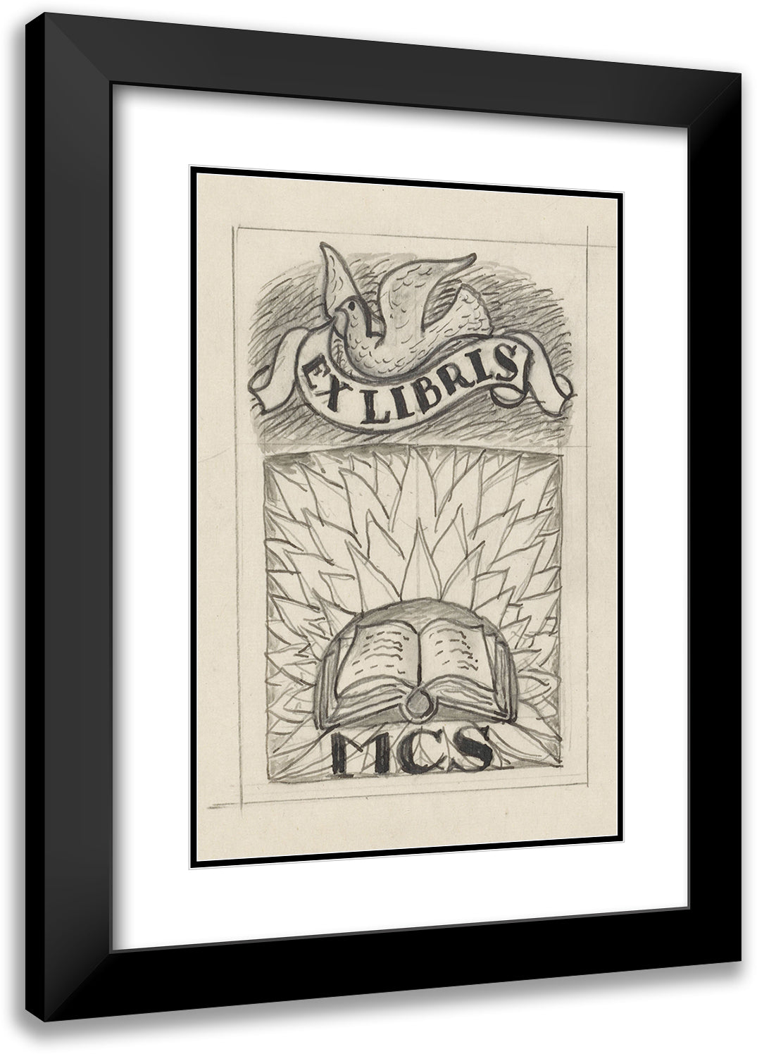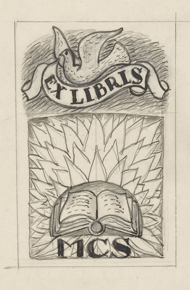 / Design Ex Libris for Mcs, with the Presentation of an Open Book and a Pigeon (1891)