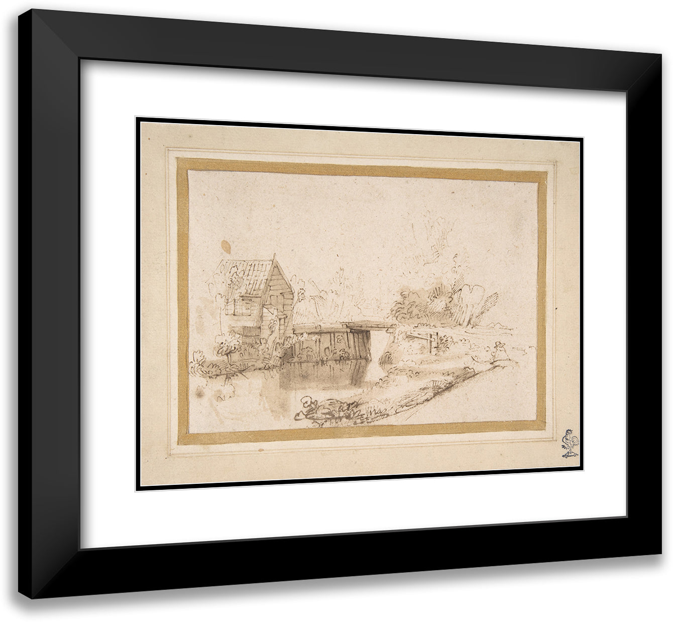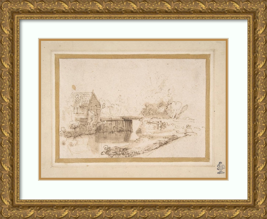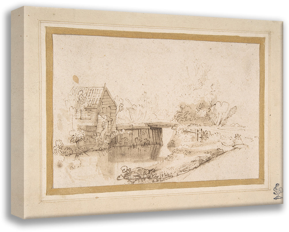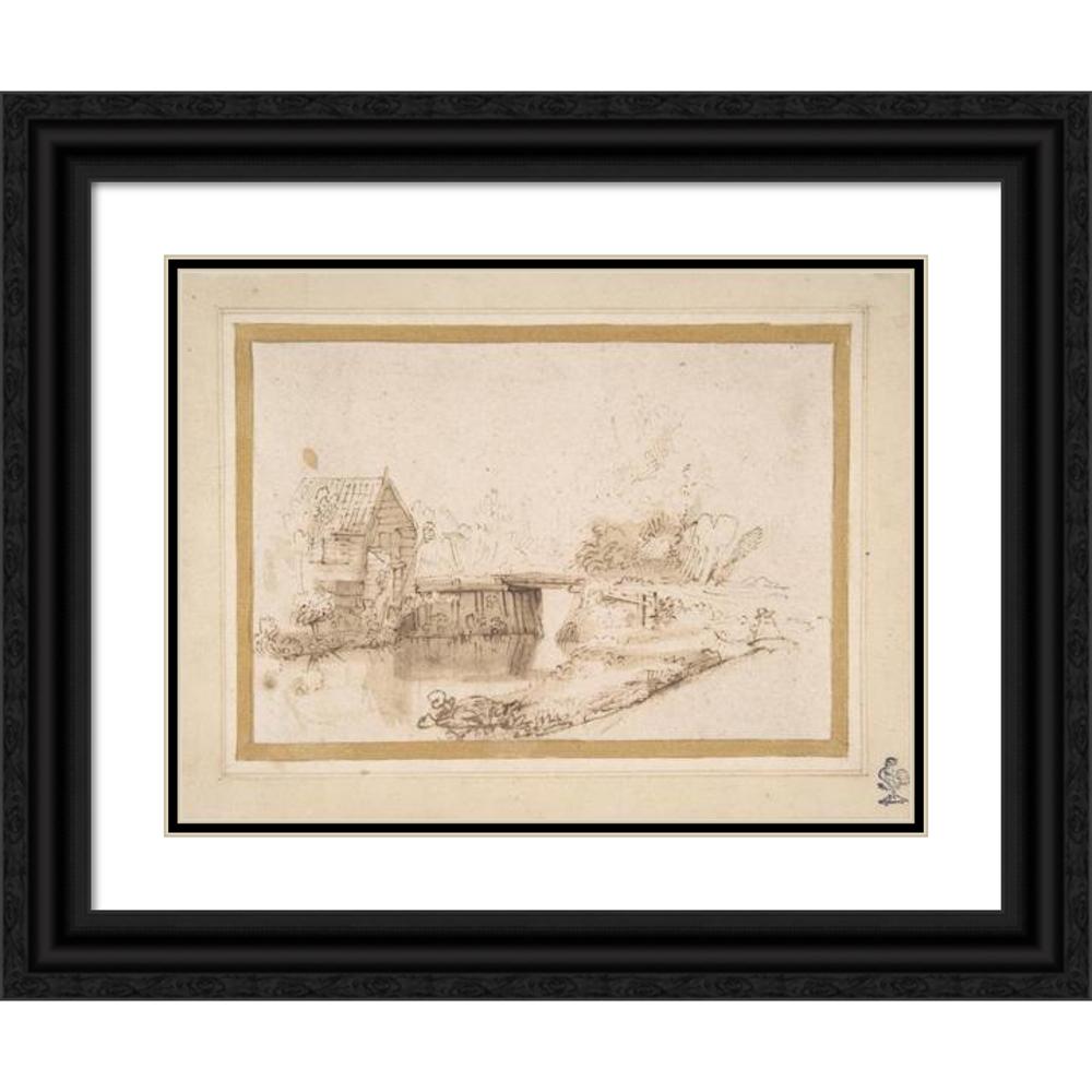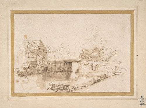 / Landscape with a Draughtsman Seated by a River, a Bridge and a Cottage Behind (17th Century)