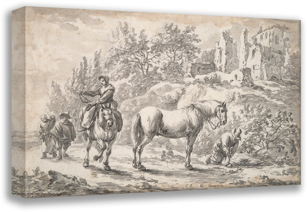 Peasants and Horses Near the Ruins of a Castle