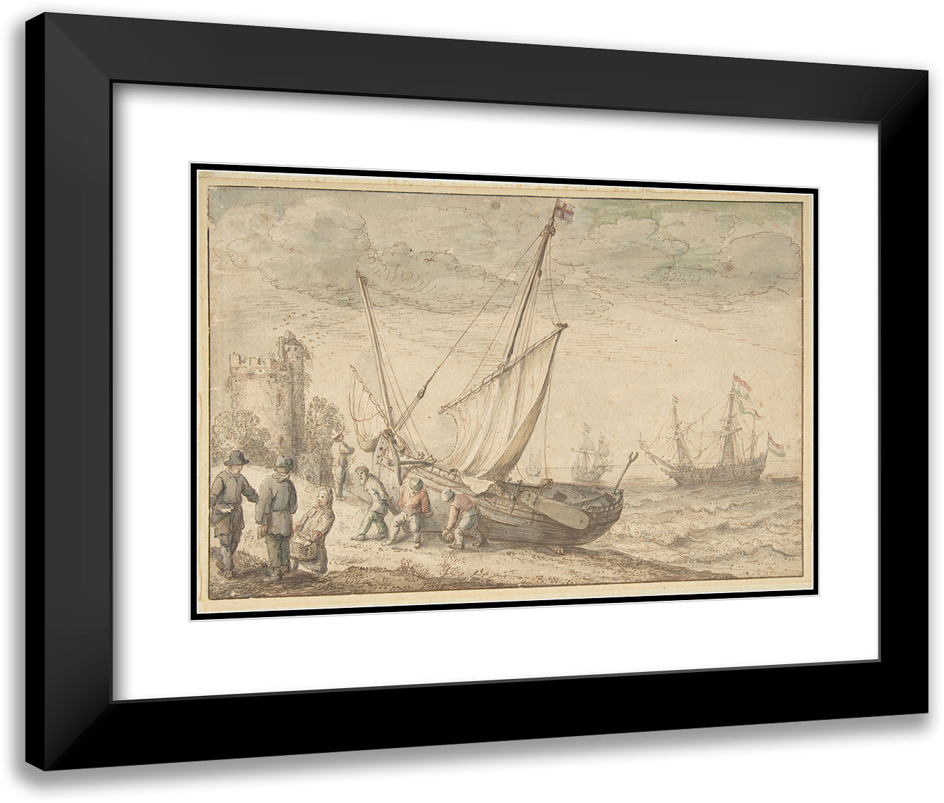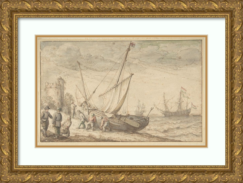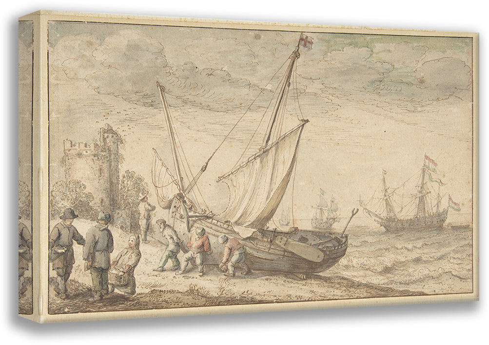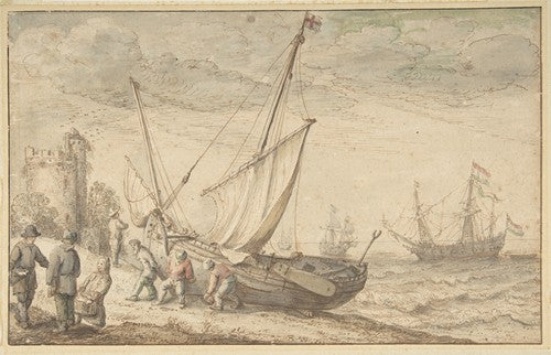 Fisherfolk Hauling Their Boat onto the Shore