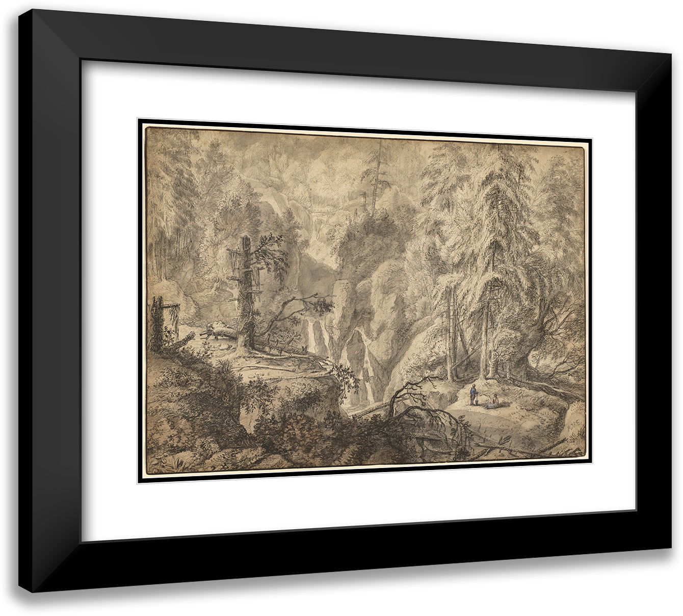 / Mountain Landscape, Peasants in a Clearing Near a Waterfall (Early 1650s)