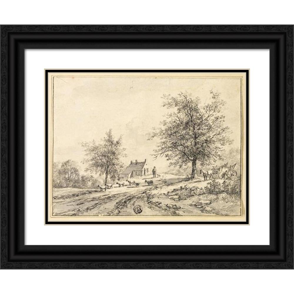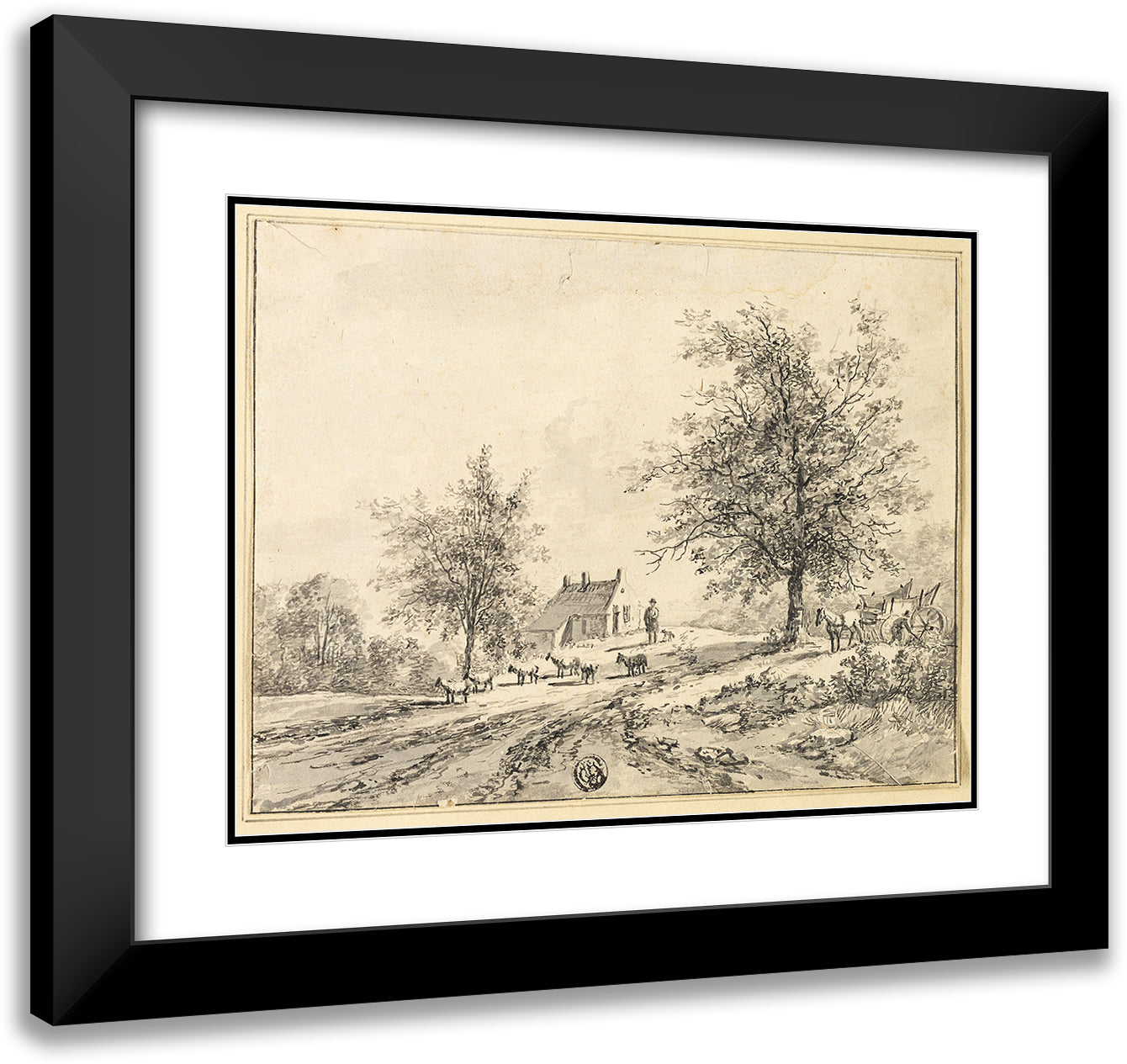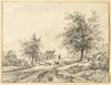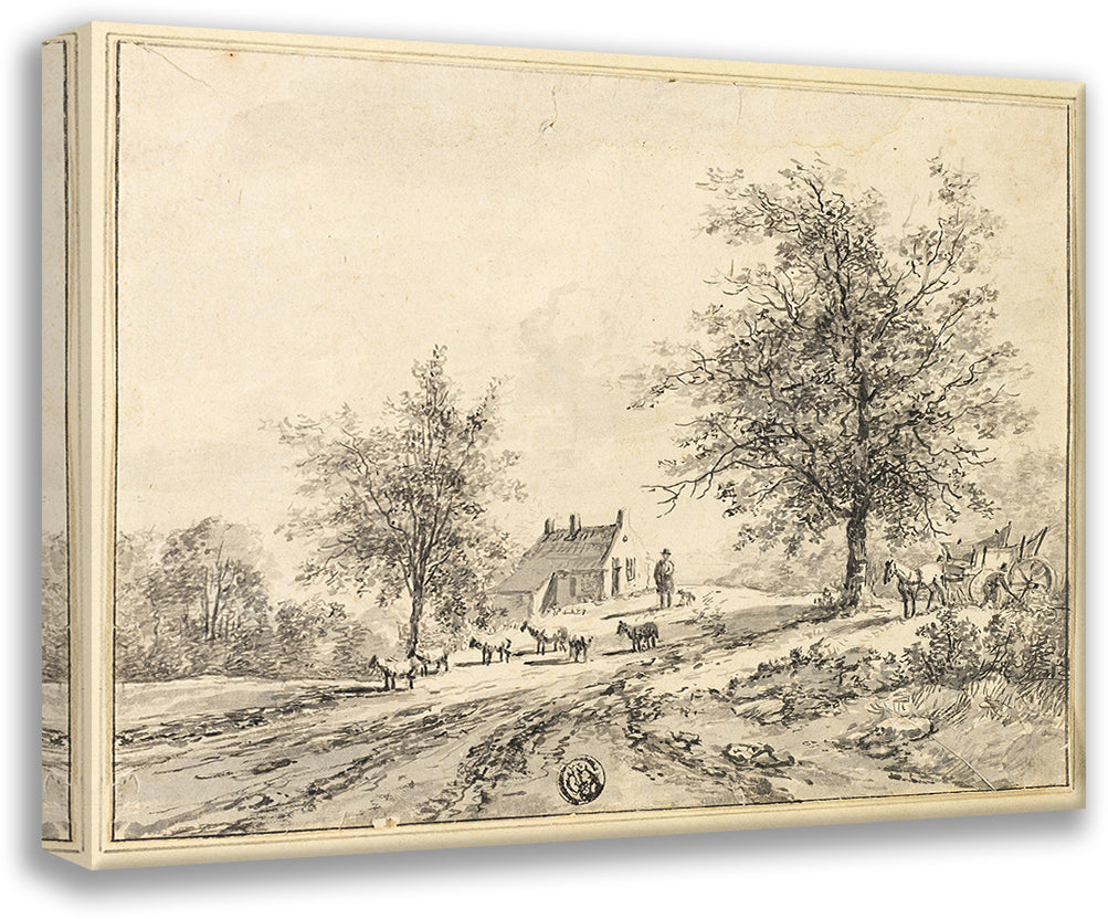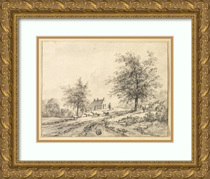 Goatherd, Goats on Road Near Carriage and House