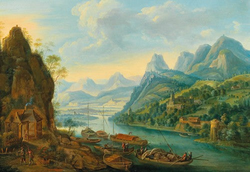 A River Landscape with Mountains