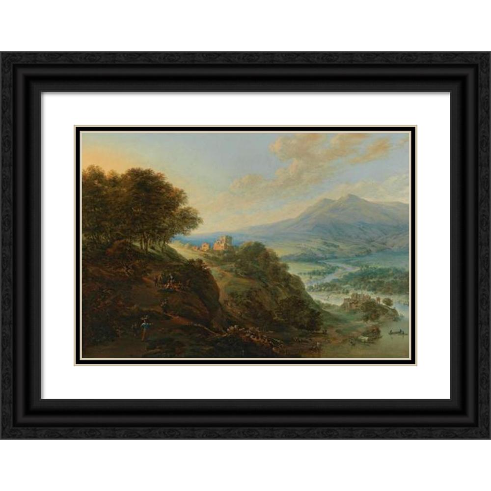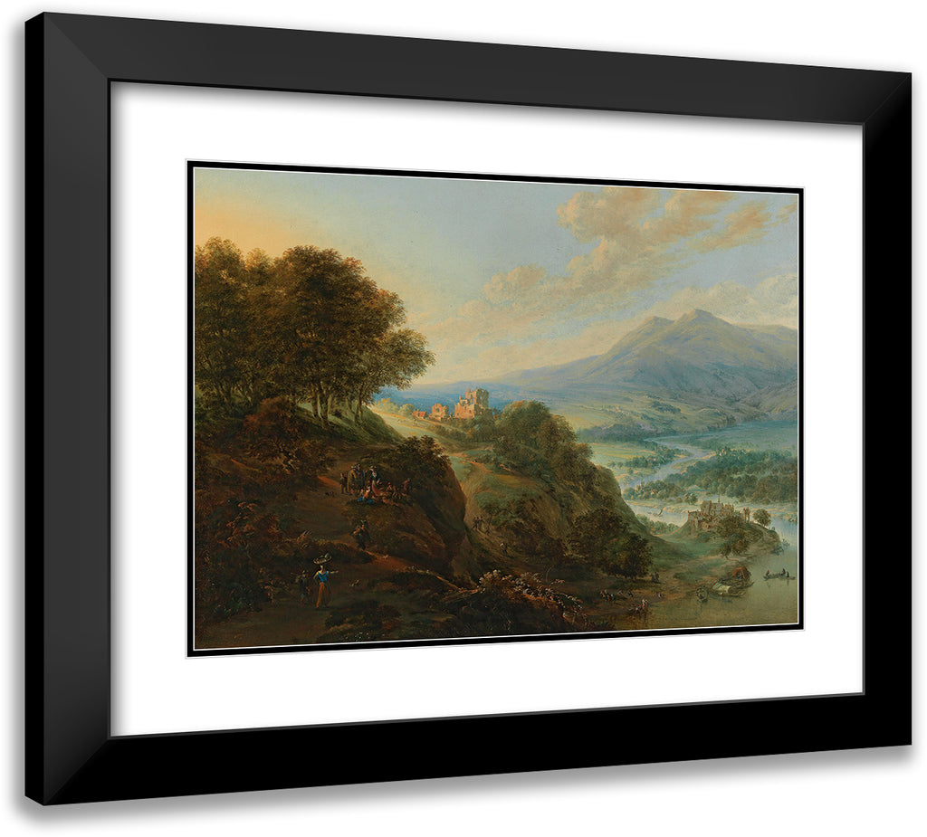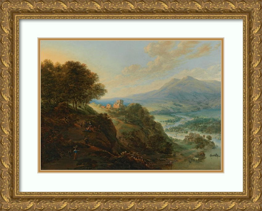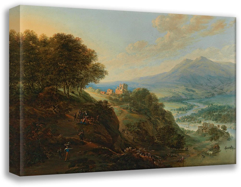 / A Vast Mountain Landscape with Peasants Resting Near a Path and a Small Fortified Town in a Valley