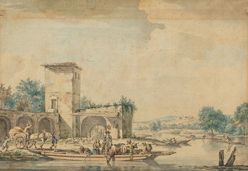 River Landscape with a Ferry Boat