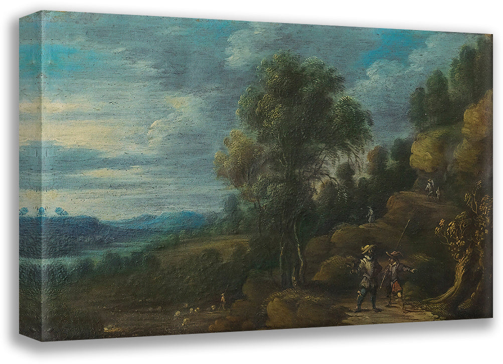 A Wooded Landscape With Figures on a Path