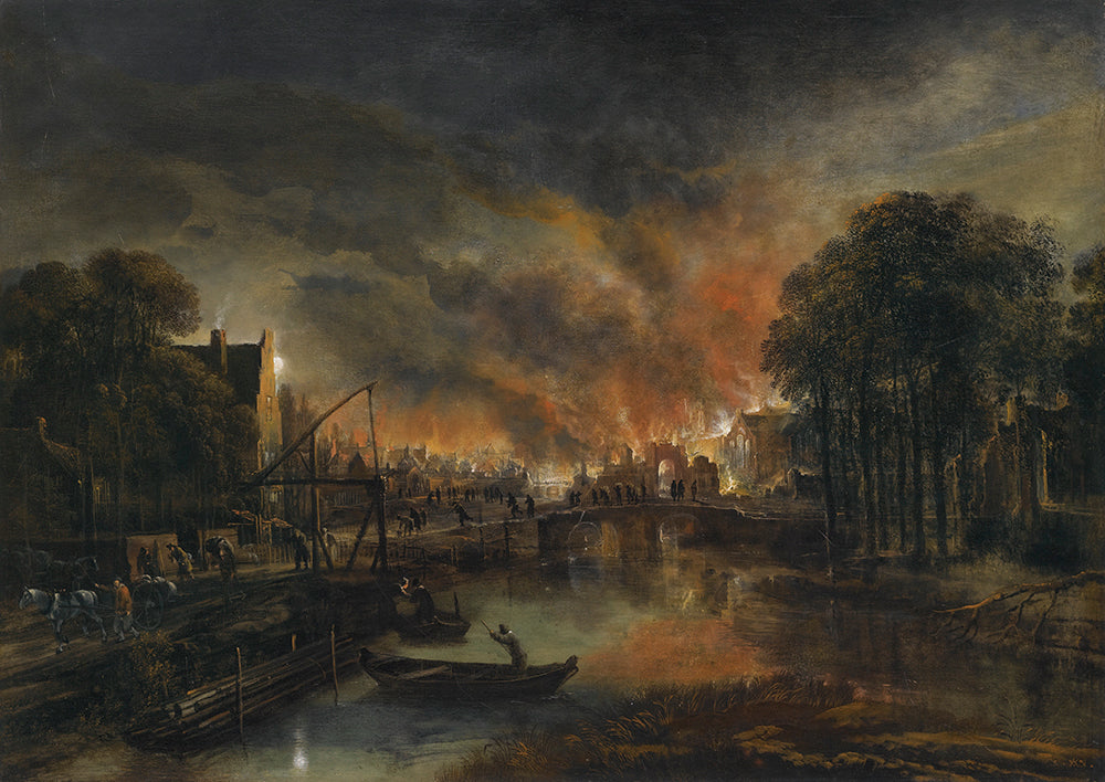 A Moonlit Landscape with a Burning Village