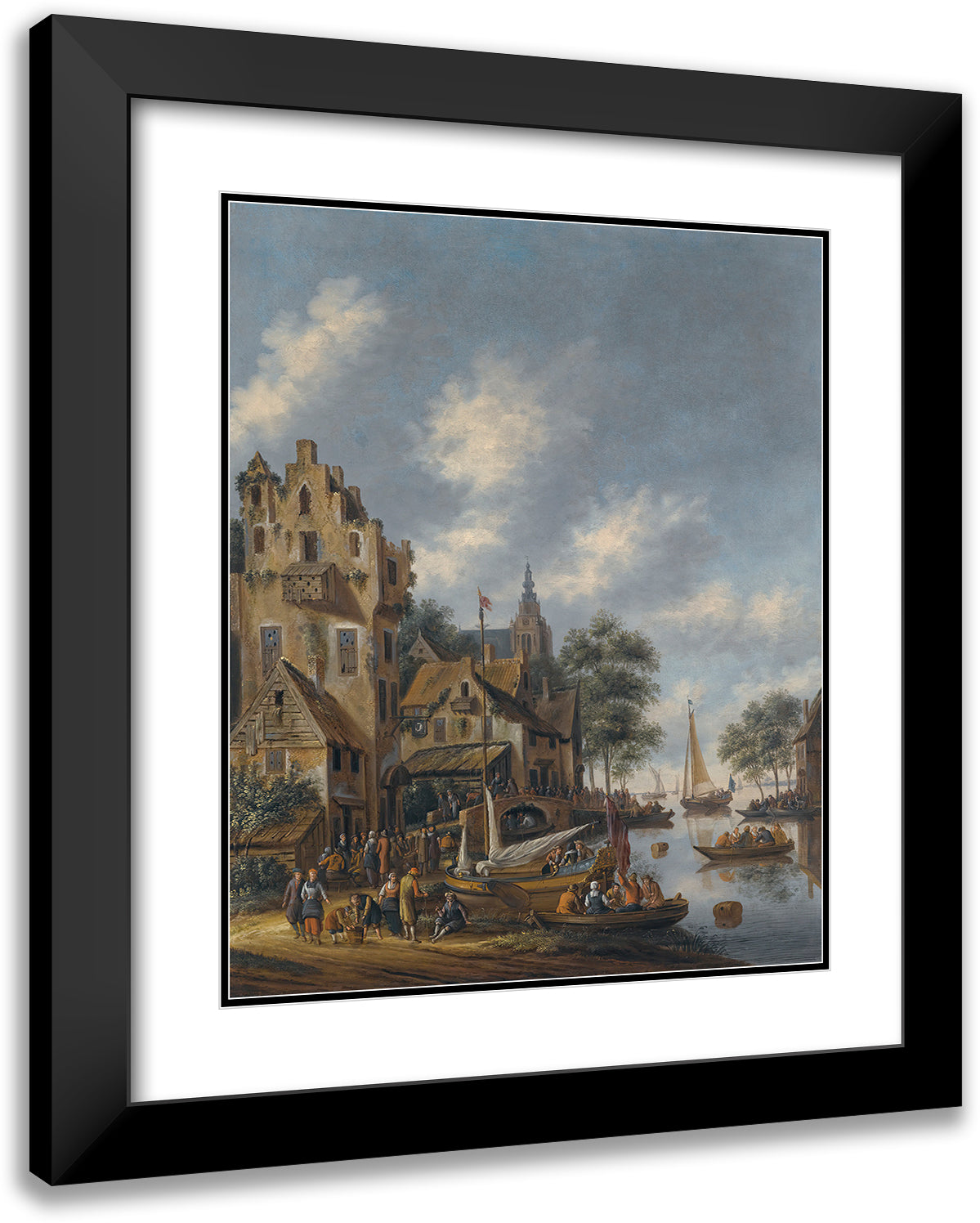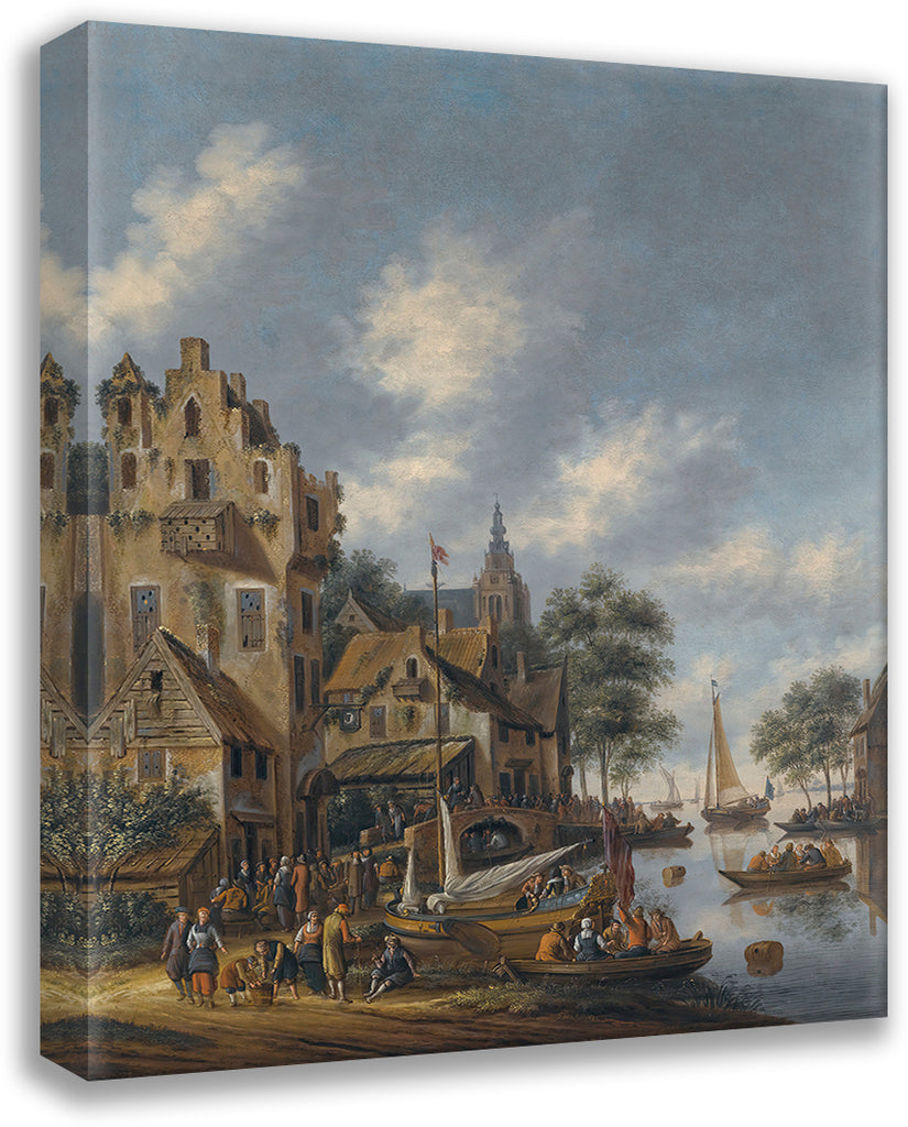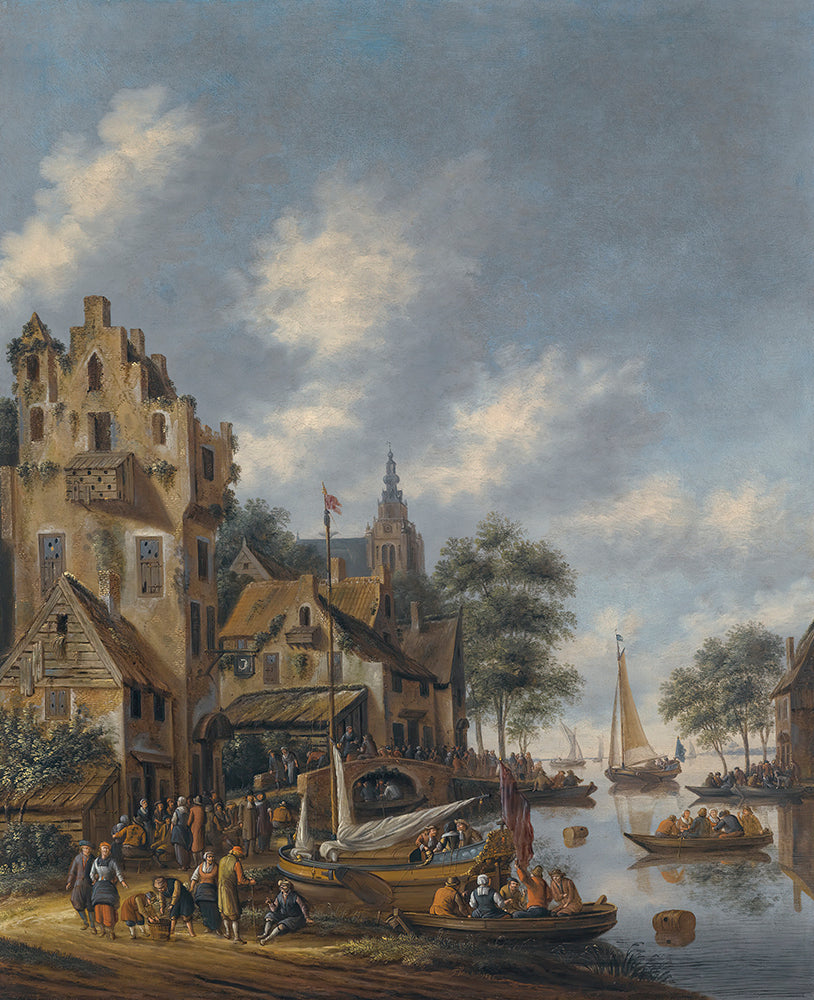 A Town on the Banks of a River with Figures at the Waterside (1686)