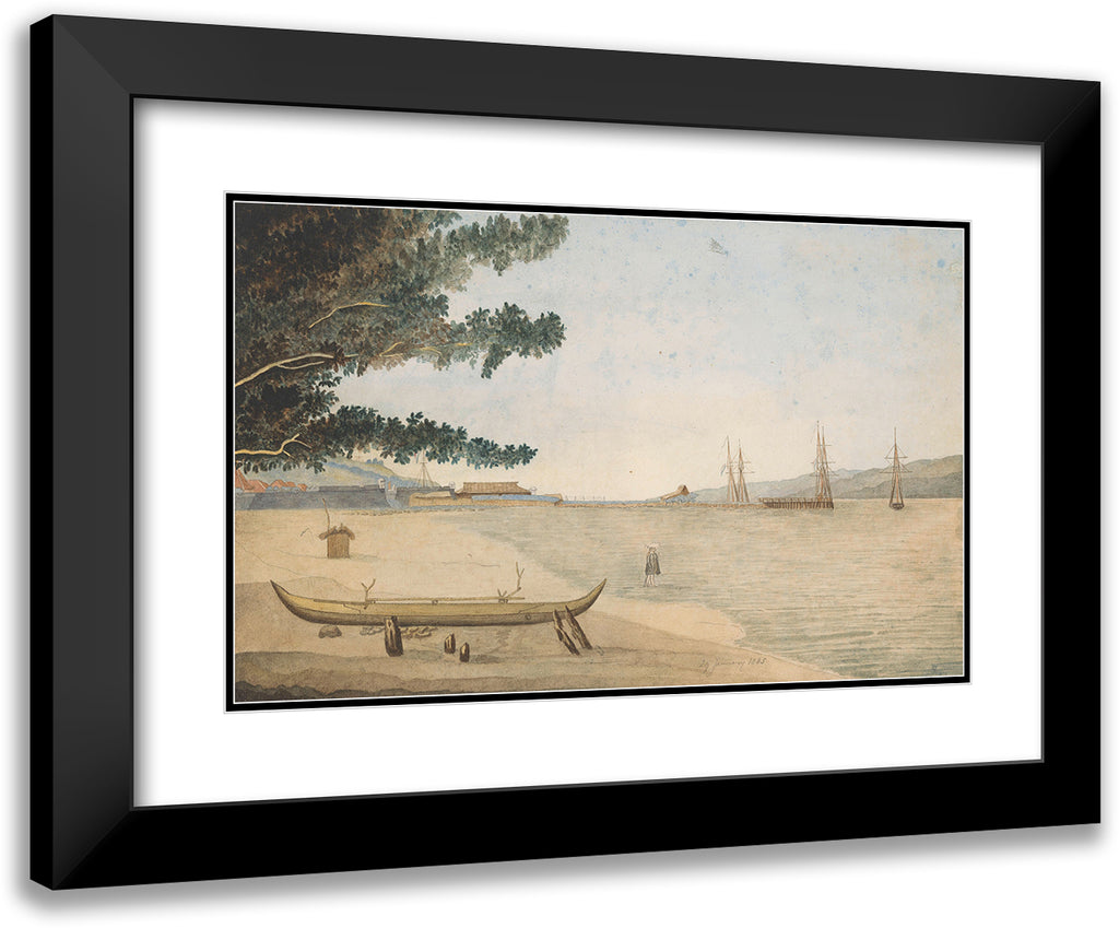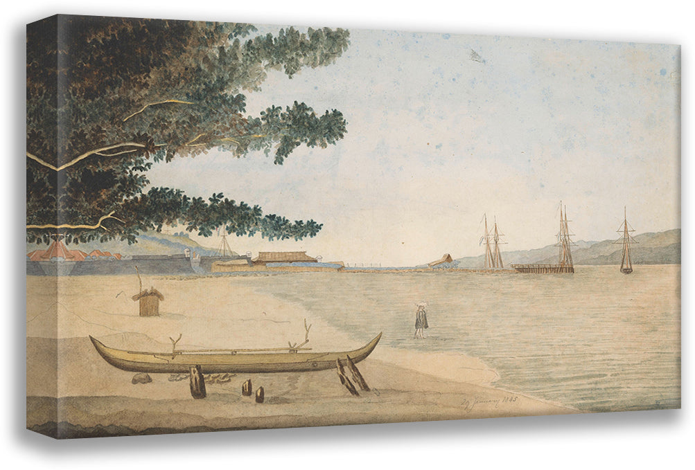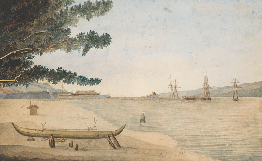View of a Dutch Settlement with Fort and Haven in Indonesia (1845)