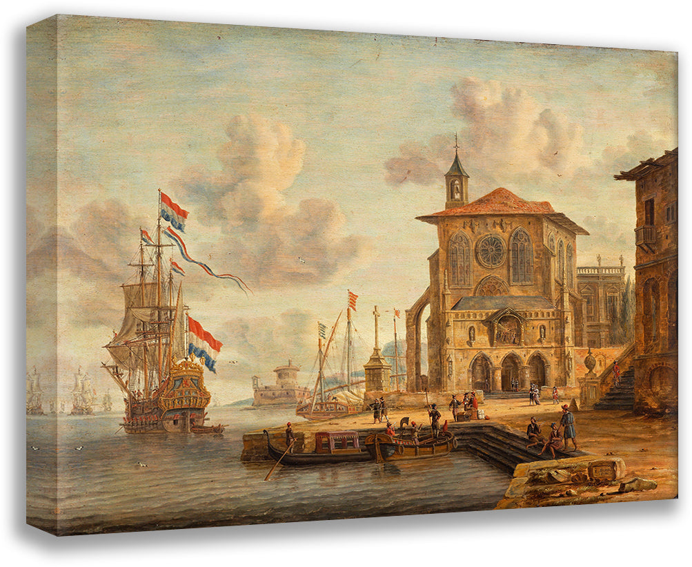 Harbour Scene with Medieval Building (1674)