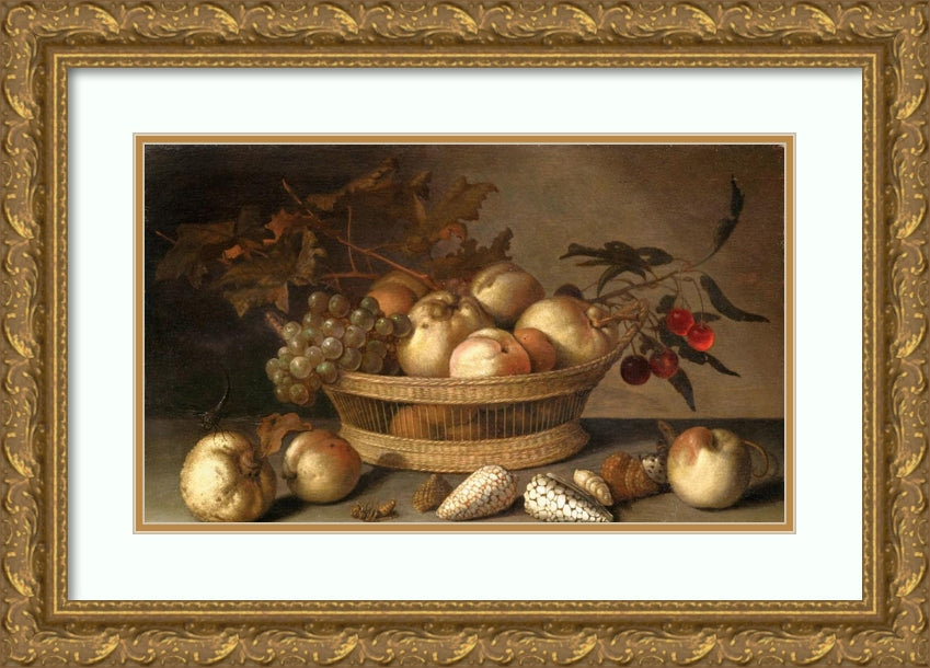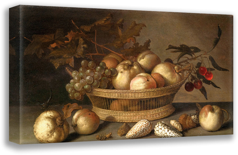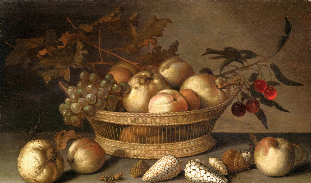 / A Basket with Cherries, Apples, Peaches and a Bunch of Grapes, Surrounded by Apples, Peaches, Shells, Bees and a Dragonfly