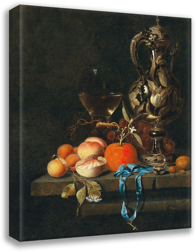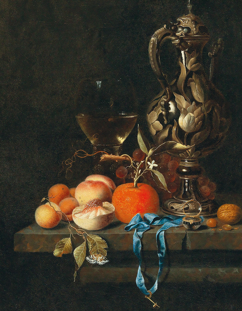 Apricots, Peaches and Other Fruit with Glass and a Jug