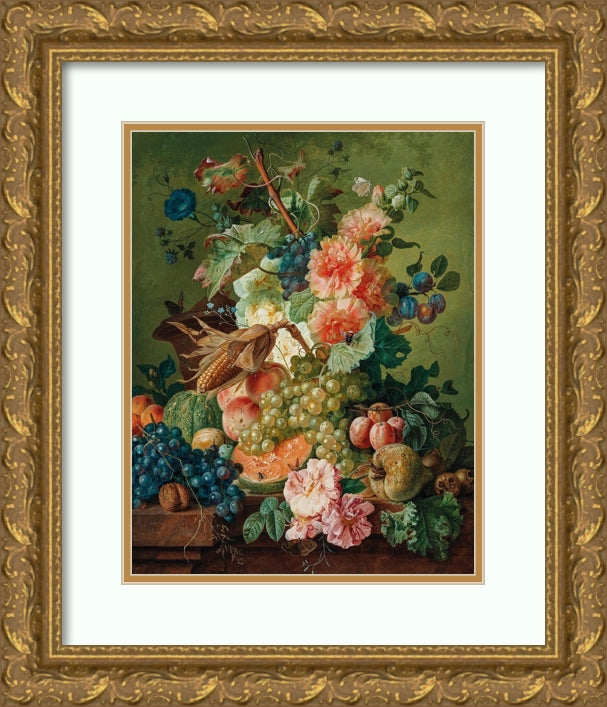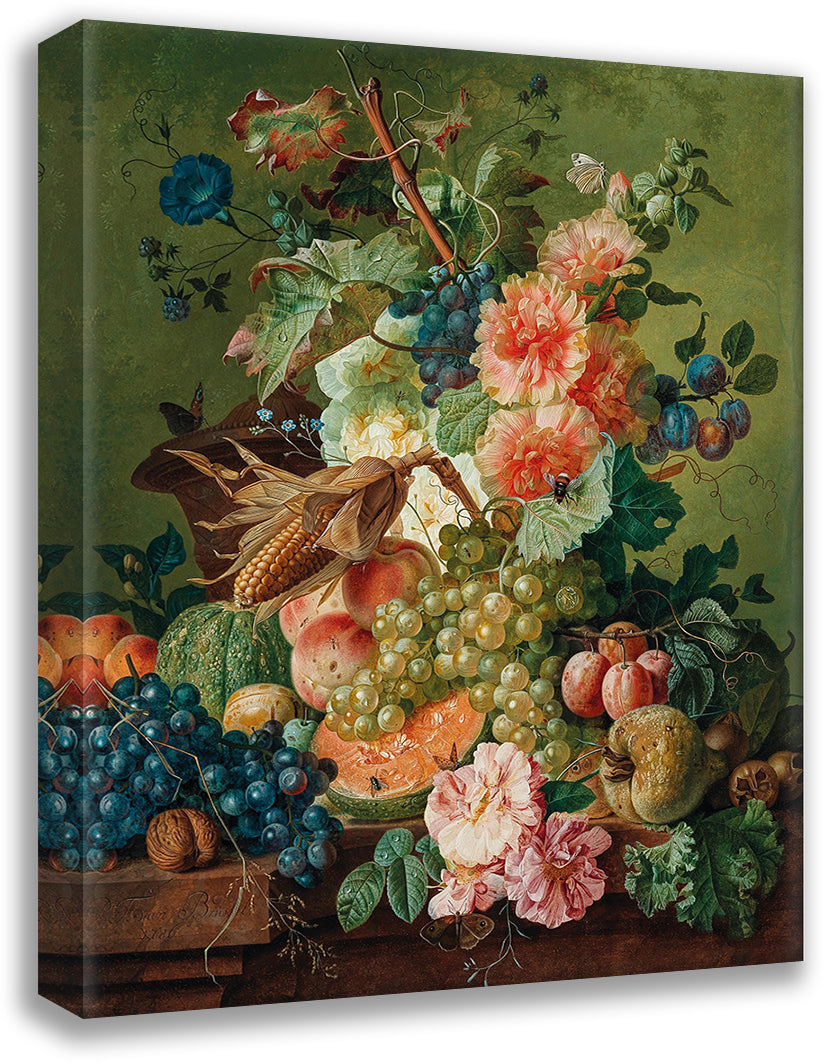 Flowers, Fruit and a Corn on the Cob on a Table Ledge (1786)