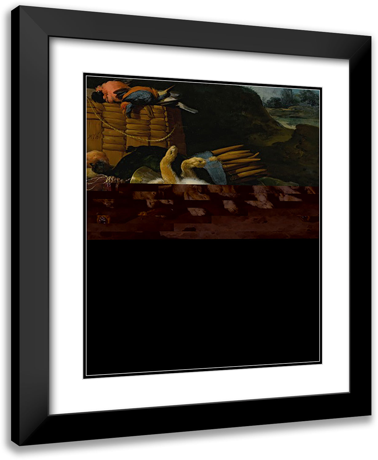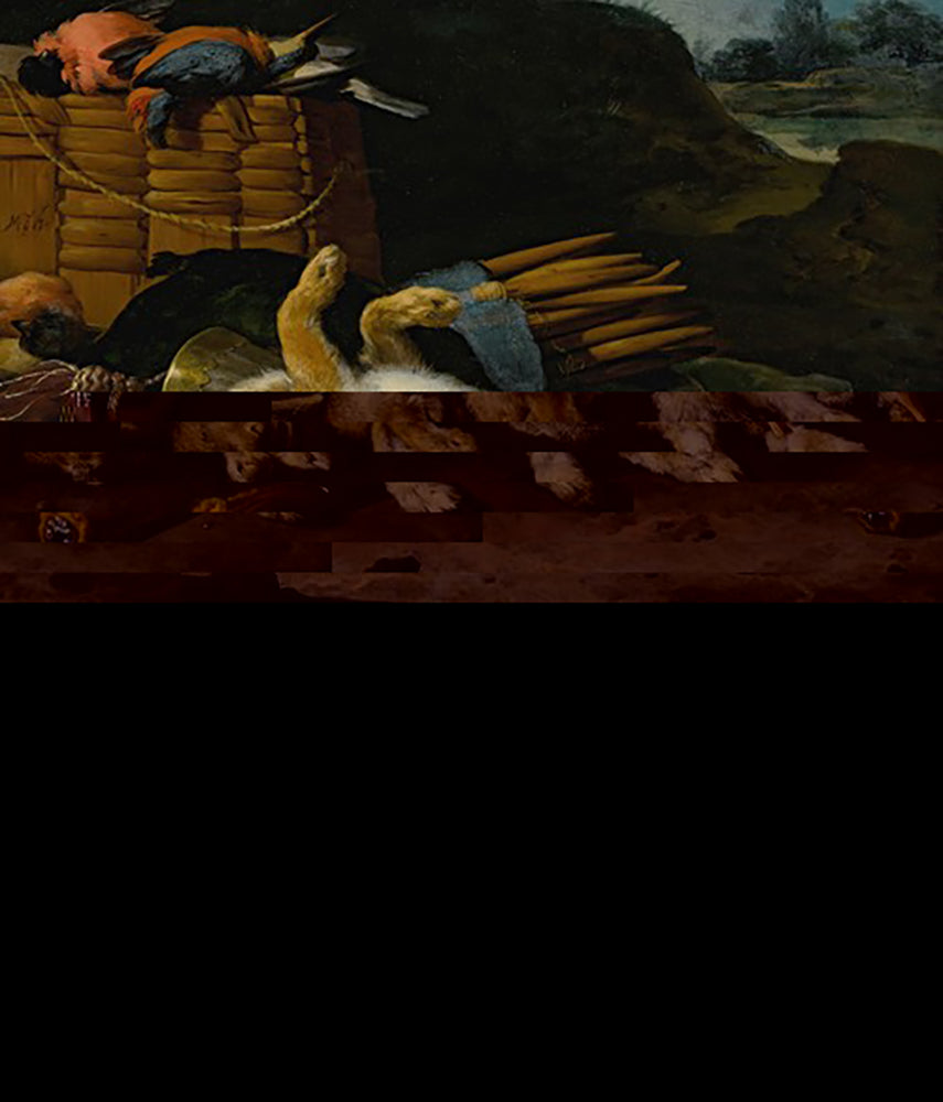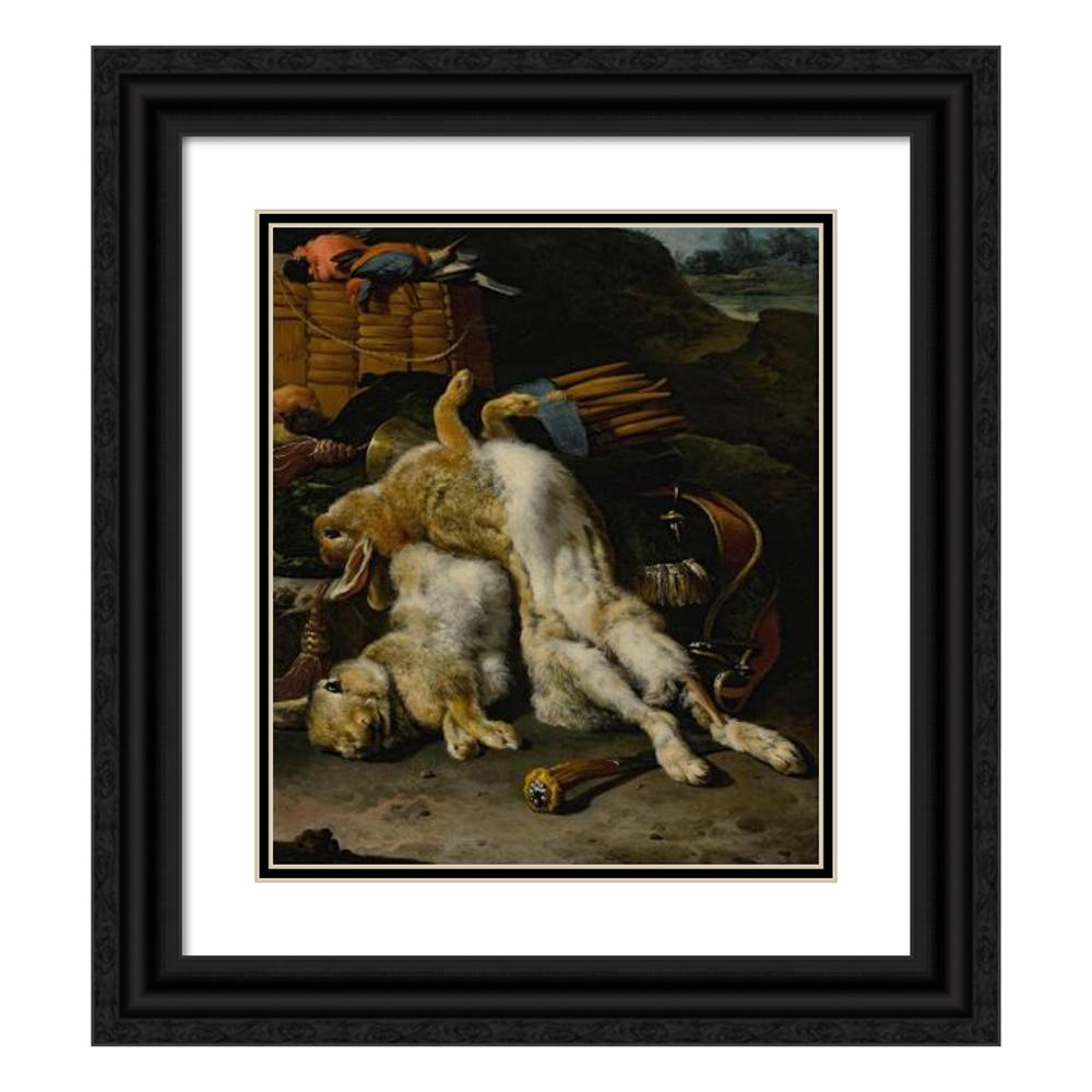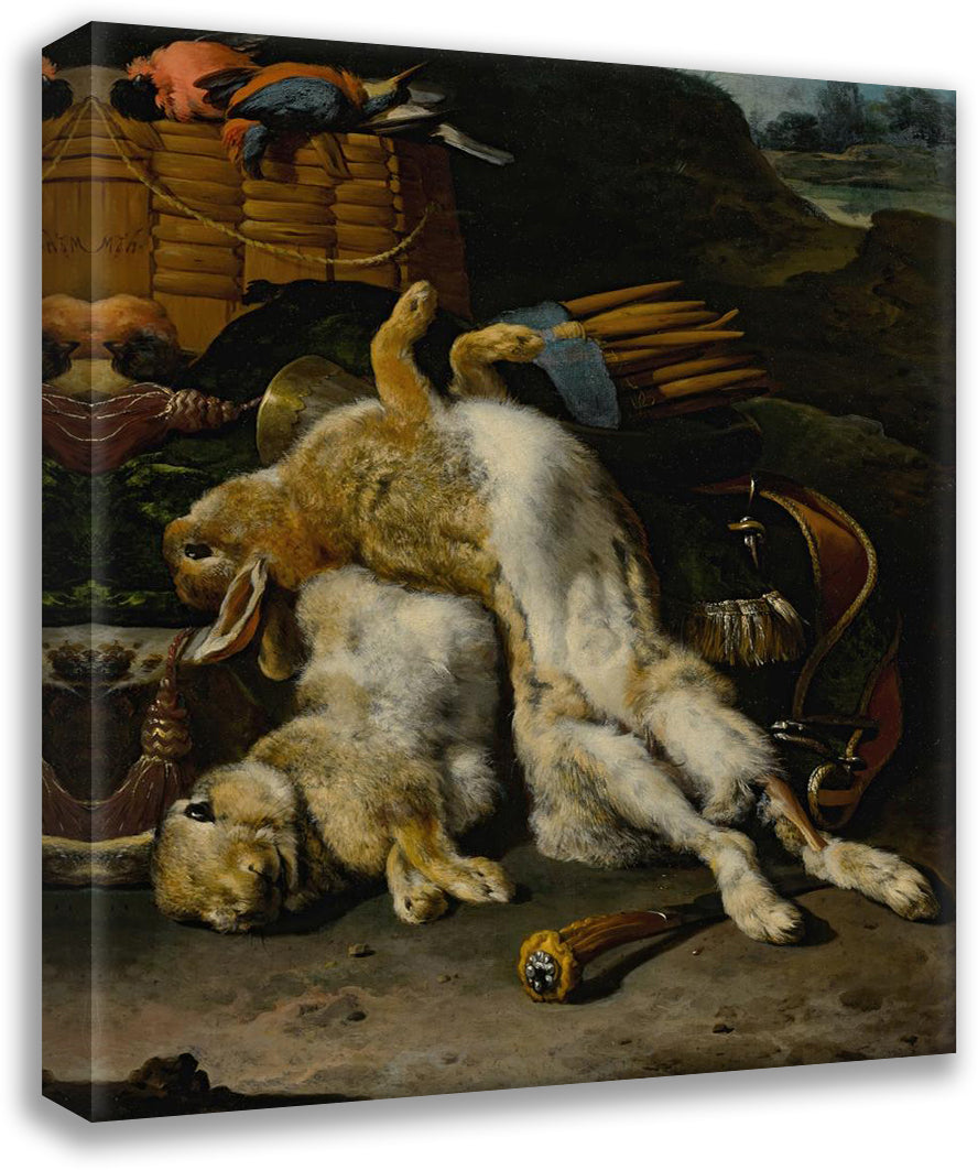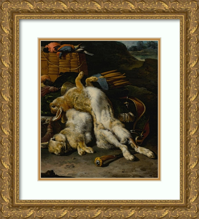 / A Brace of Rabbits and Small Birds with Hunting Equipment in a Landscape