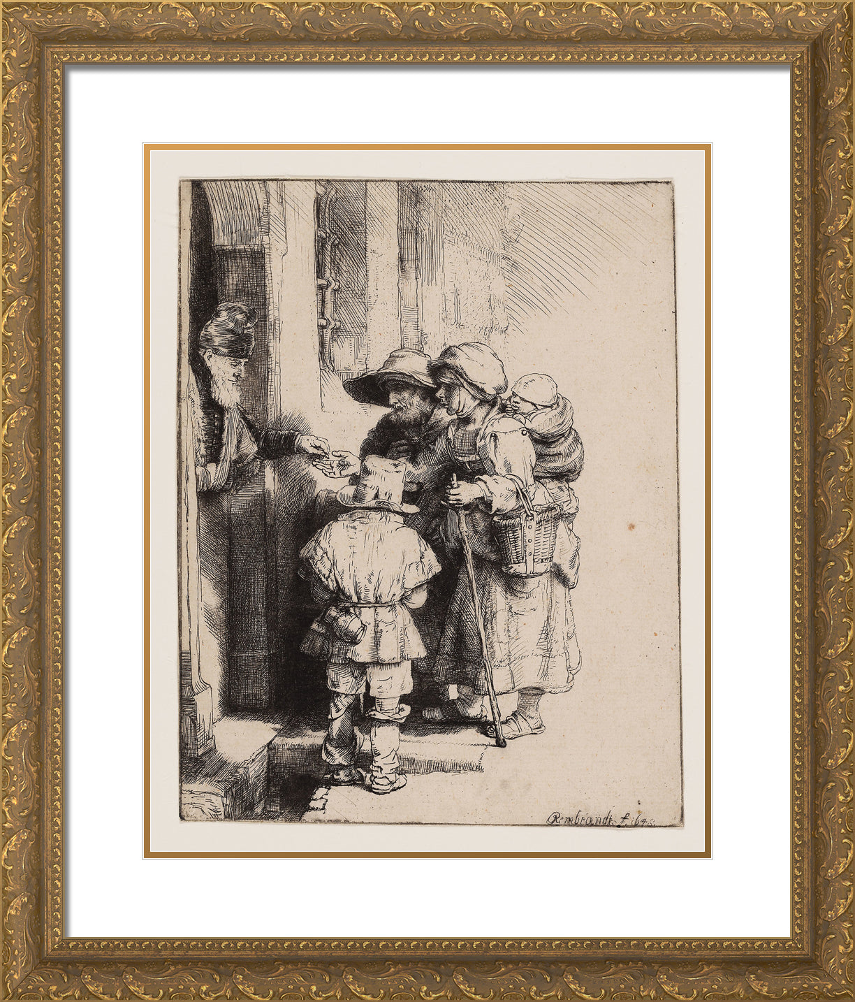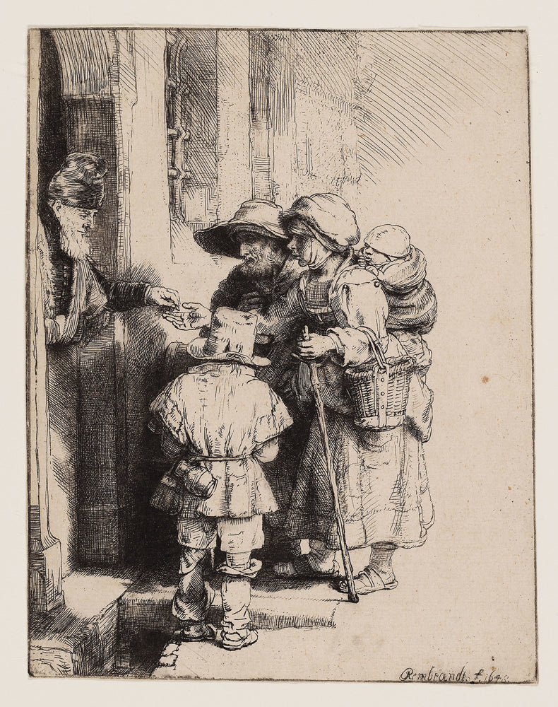 • Beggars Receiving Alms at the Door of a House by Rembrandt