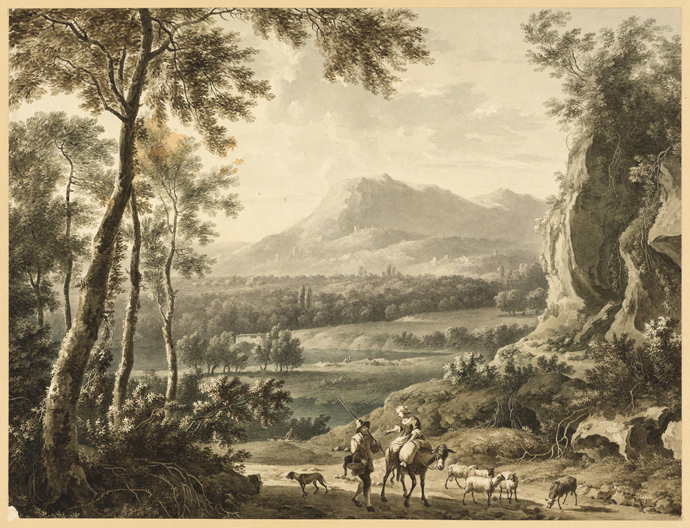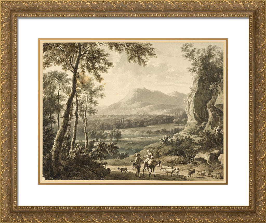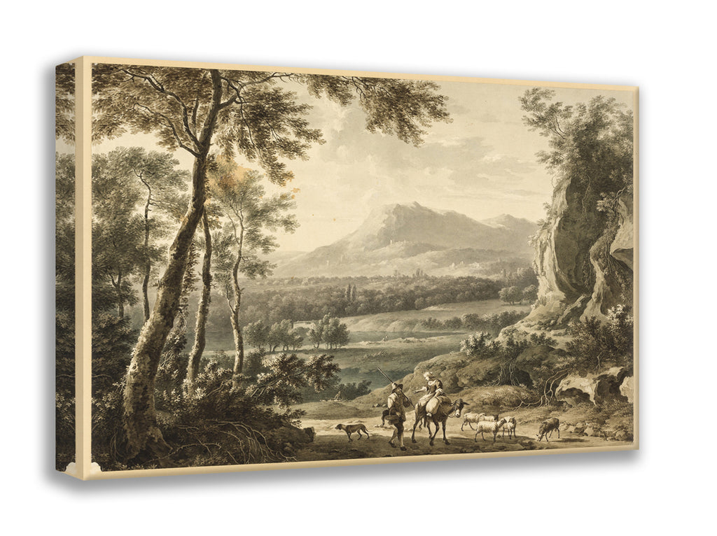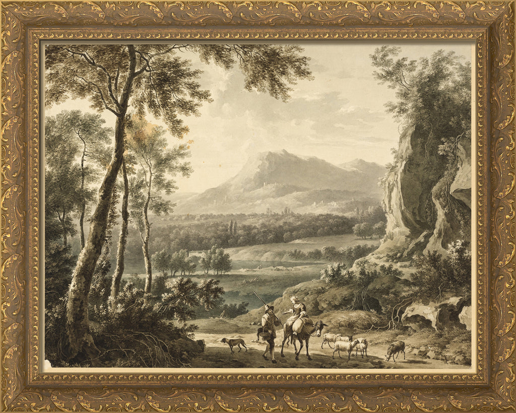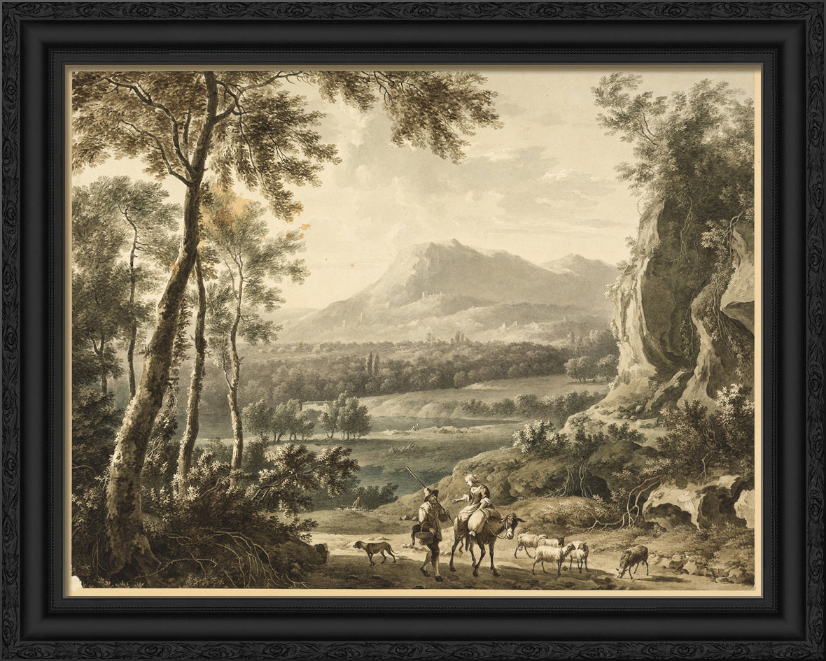• Italianate Landscape with Traveling Peasants in Foreground by Frederick de Moucheron