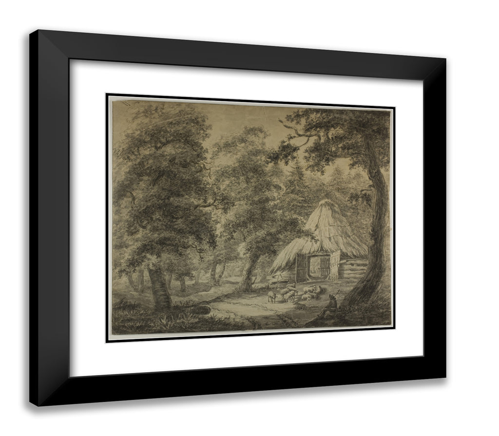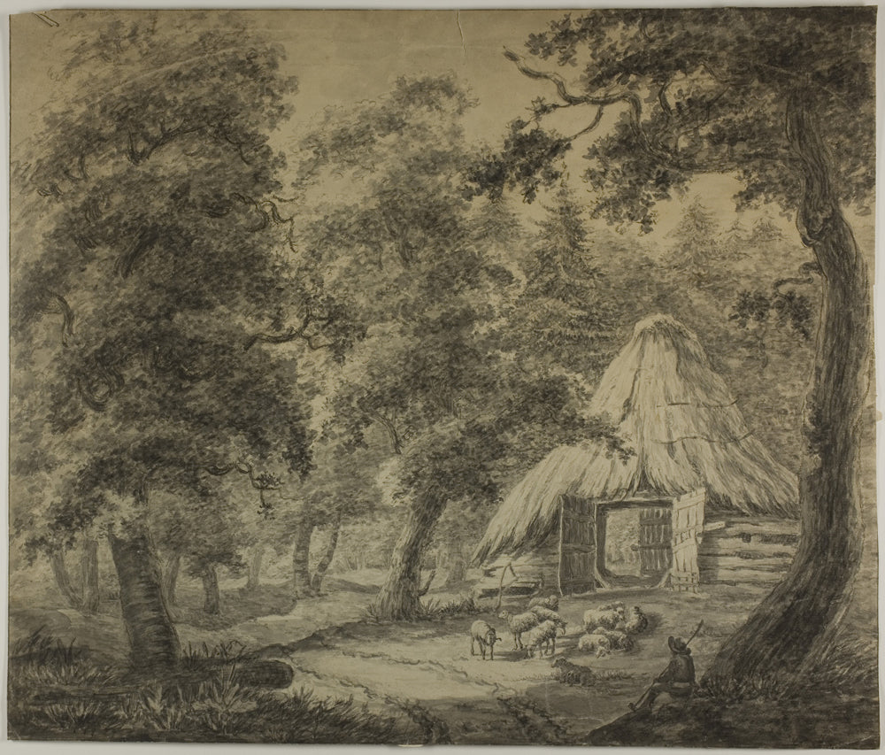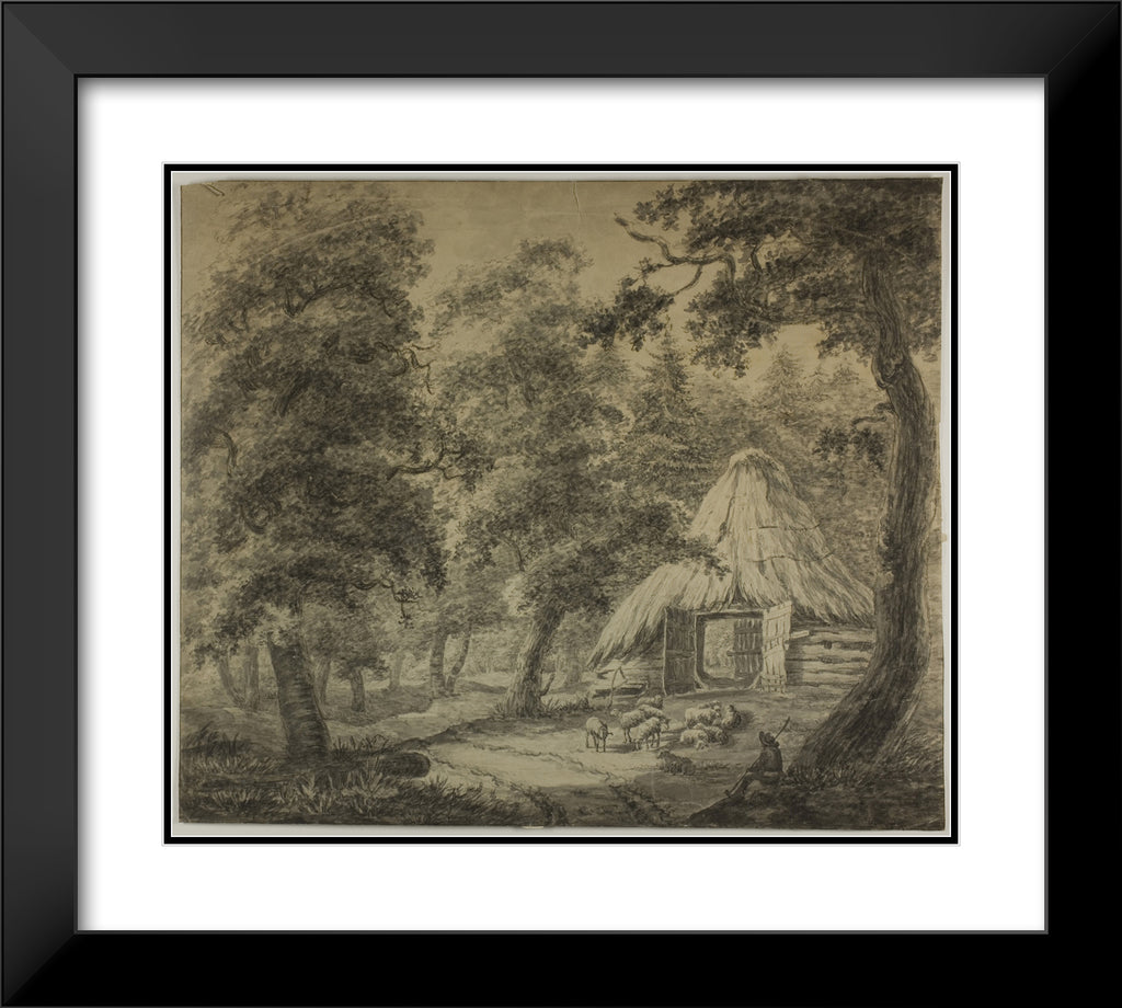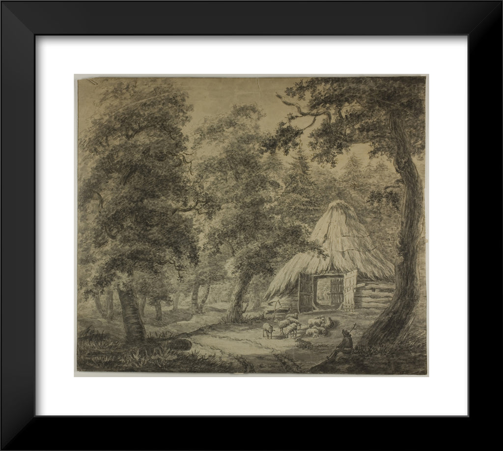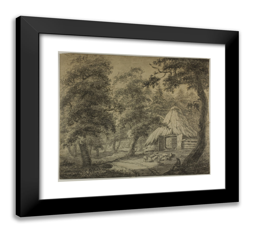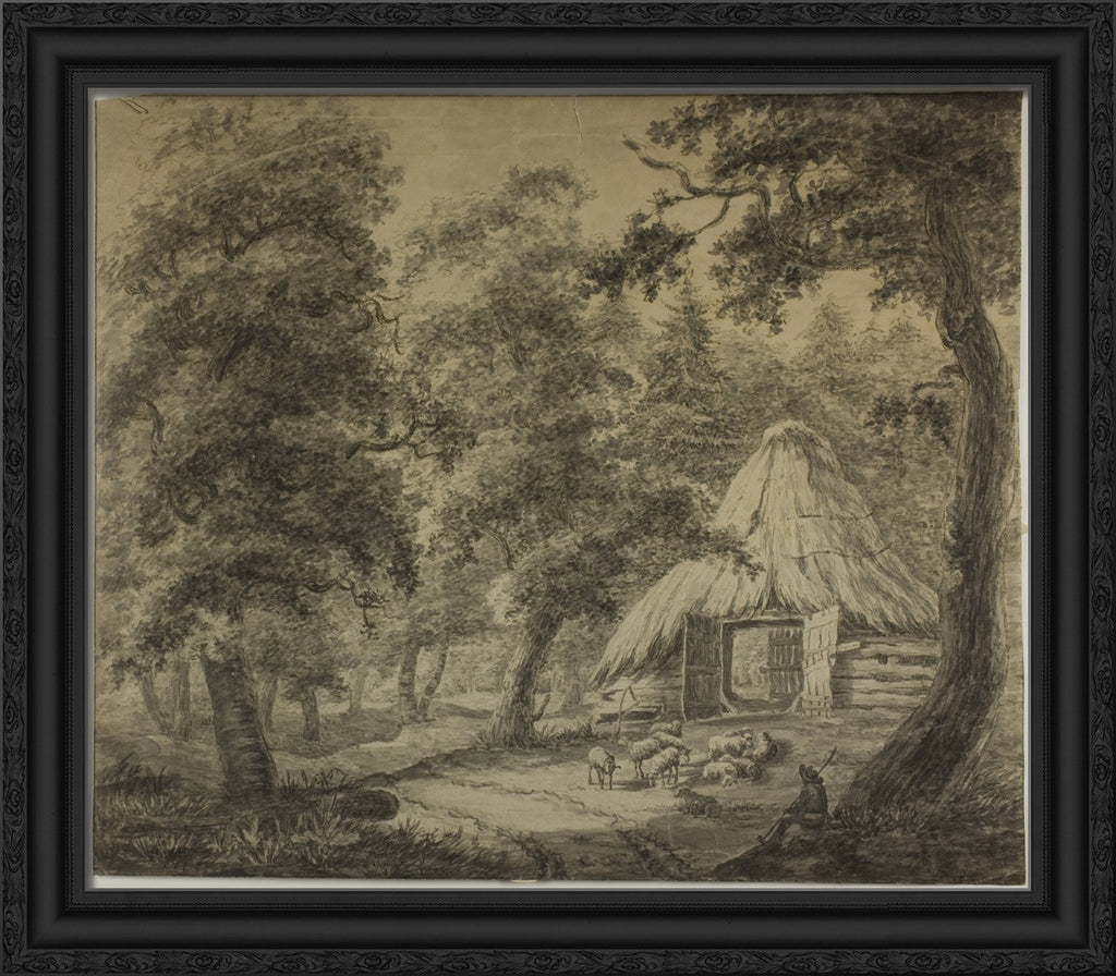 • Thatched Hut in Woods with Shepherd and Sheep by Anthonie Waterloo