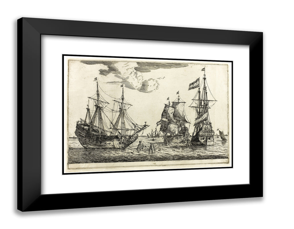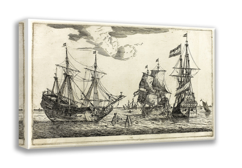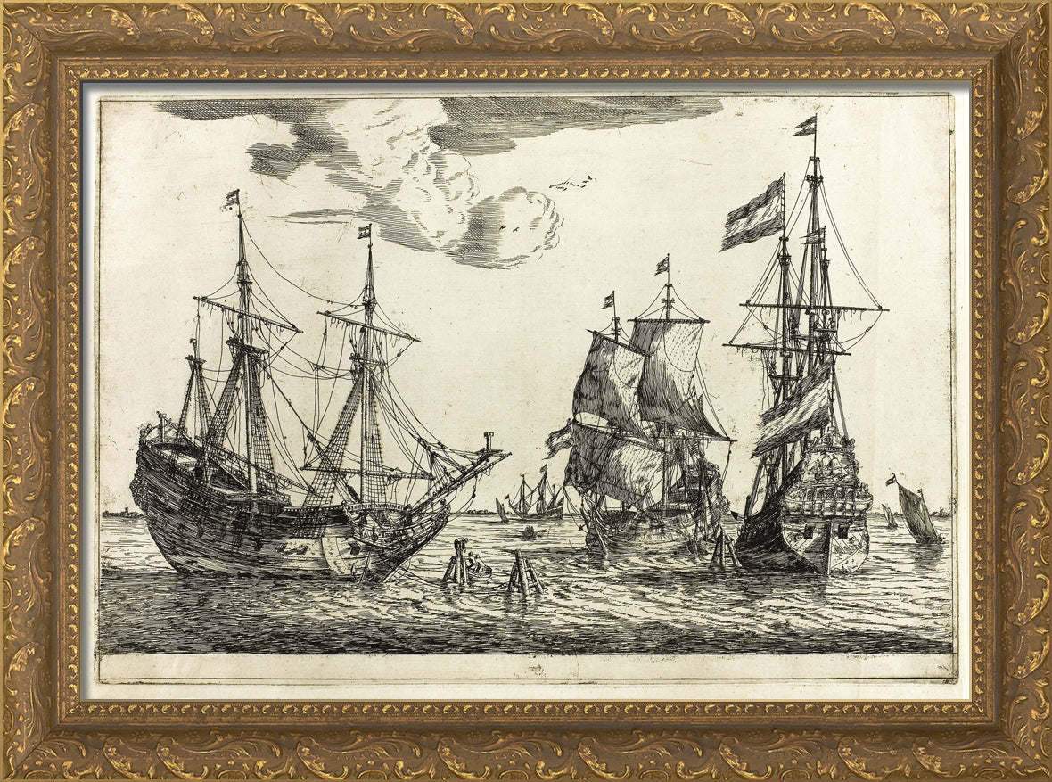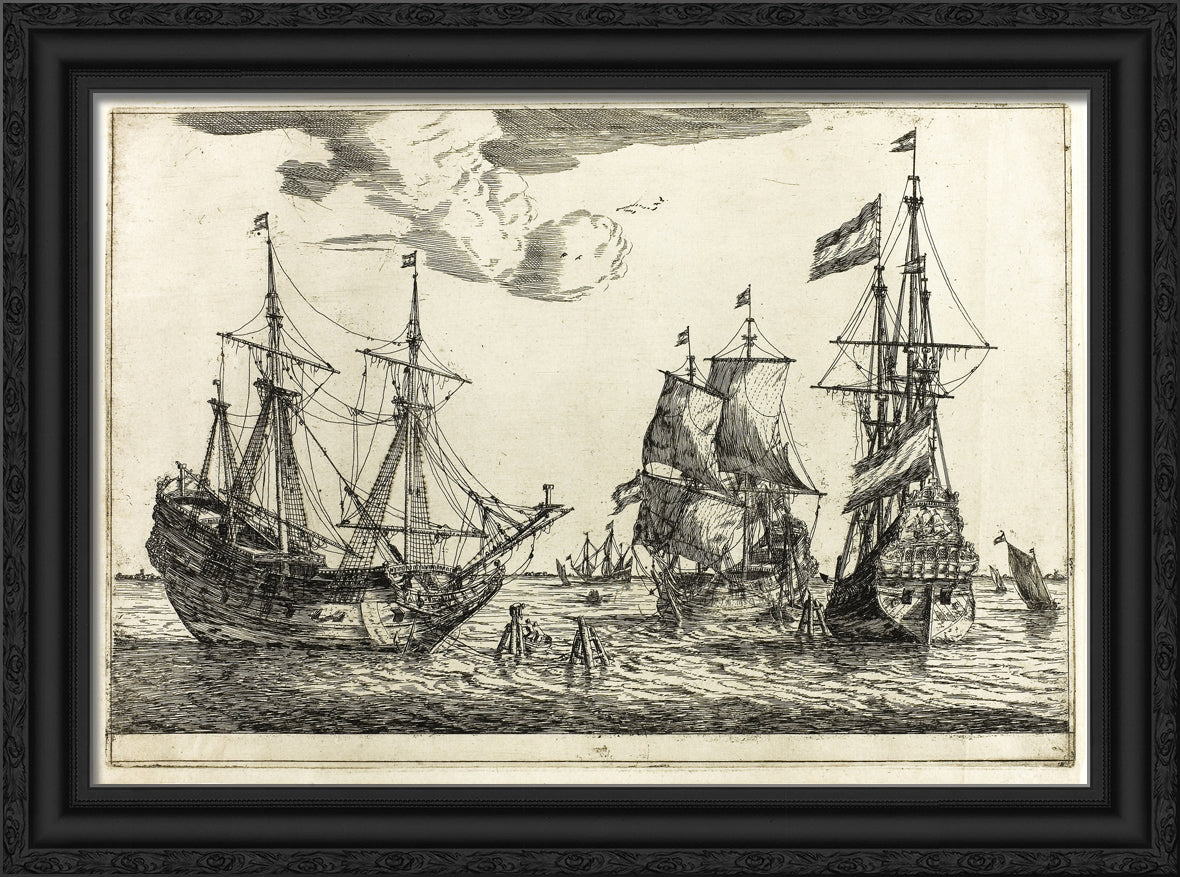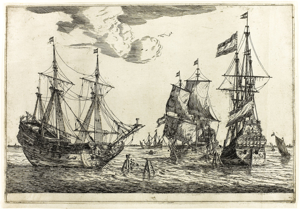 / Three Moored Sailing Vessels, from Thirteen Naval Scenes by Reinier Zeeman, (Reinier Nooms)