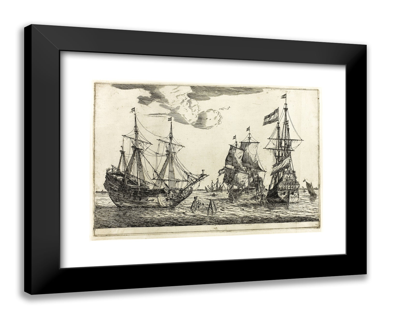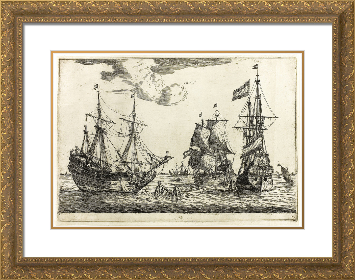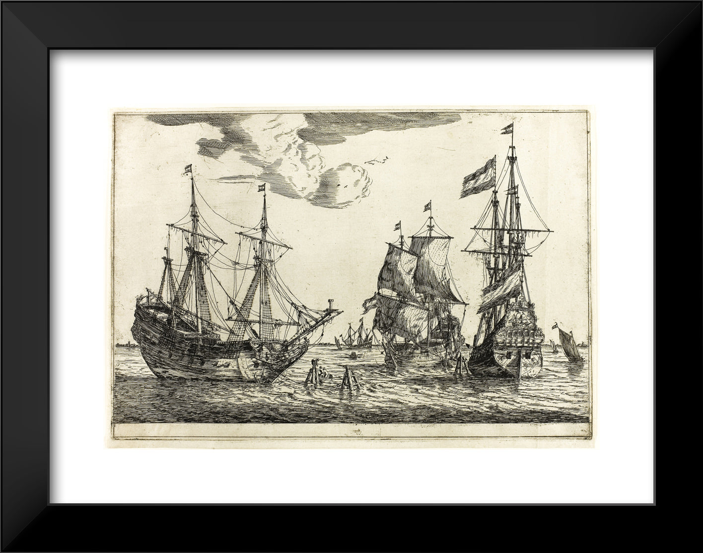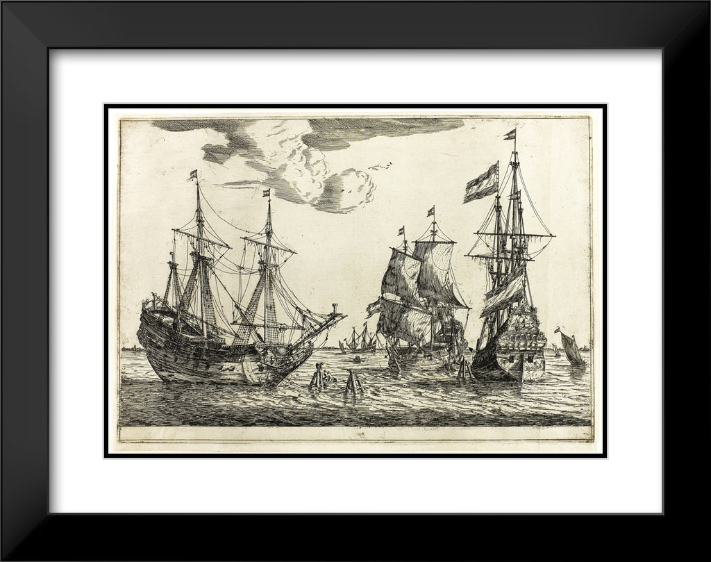 / Three Moored Sailing Vessels, from Thirteen Naval Scenes by Reinier Zeeman, (Reinier Nooms)