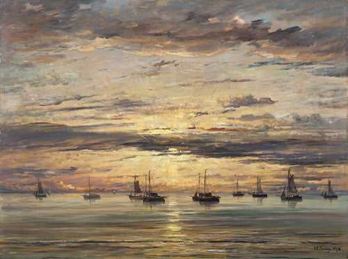 Hendrik Willem Mesdag Sunset at Scheveningen - a Fleet of Fishing Vessels at Anchor (1894) from $9.99