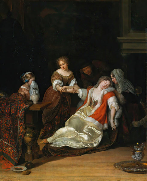 Caspar Netscher Portrait of Two Young Girls In a Park, One Playing With A Dog, the Other Holding a Carnation from a Pot (1667) from $9.99