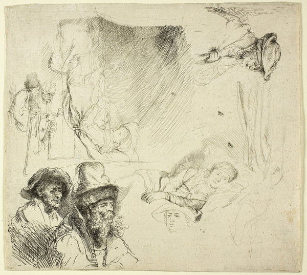 MuseumPrints Sheet of Studies: Head of the Artist, a Beggar Couple, Heads of an Old Man and Old Woman, etc. by Rembrandt from $49.99 $64.99