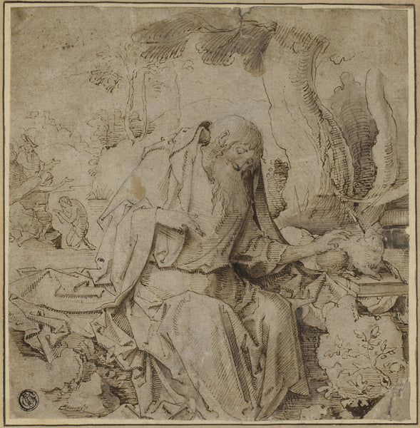 Grotto and Friars, from The Ruins of Rome by Bartholomeus Breenbergh