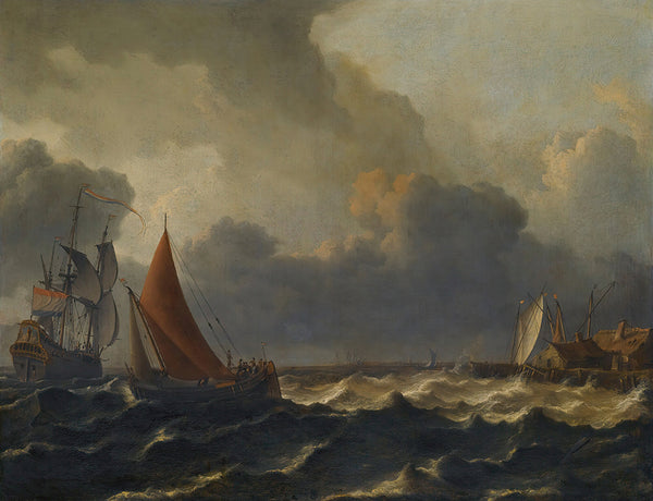 Aernout Smit A Smalschip Closed Hauled in a Stiff Breeze with a Flagship Offshore to the Left And a Jetty to the Right from $9.99