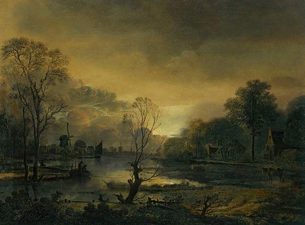 Aert van der Neer A Moonlit River Landscape with Figures Standing by a Gate, a Village Beyond from $9.99
