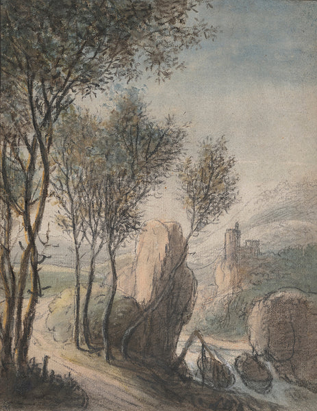Aert van der Neer A River Landscape at Dusk with and Figures Walking Along a Path Towards a Village To The Left, a Church in the Distance from $9.99