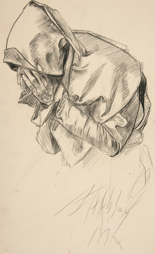 / Study of a Robed Figure, Crying, for the Quest of the Holy Grail Mural Series at Boston Public Library (1978)