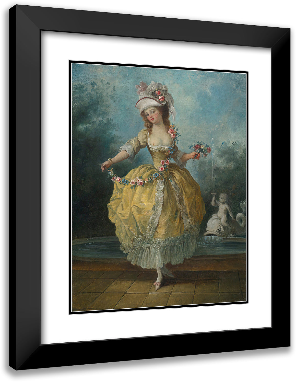 A Young Lady in a Garden, Holding a Garland of Flowers