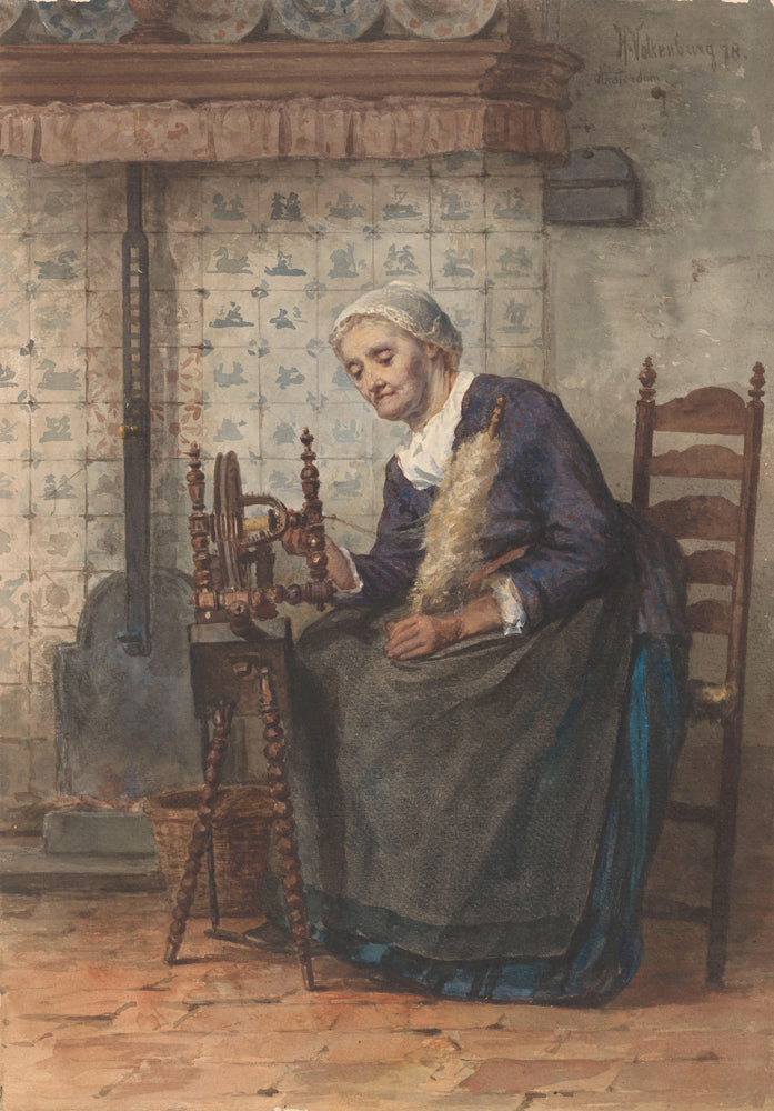 Old Woman in Interior on Spinning Wheel (1878)