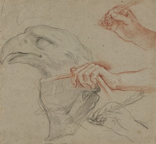 / Study for an Eagle's Head, Three Studies for a Hand with a Quill and One Study for a Hand Holding a Book (1624 - 1714)