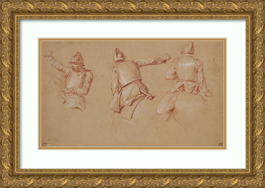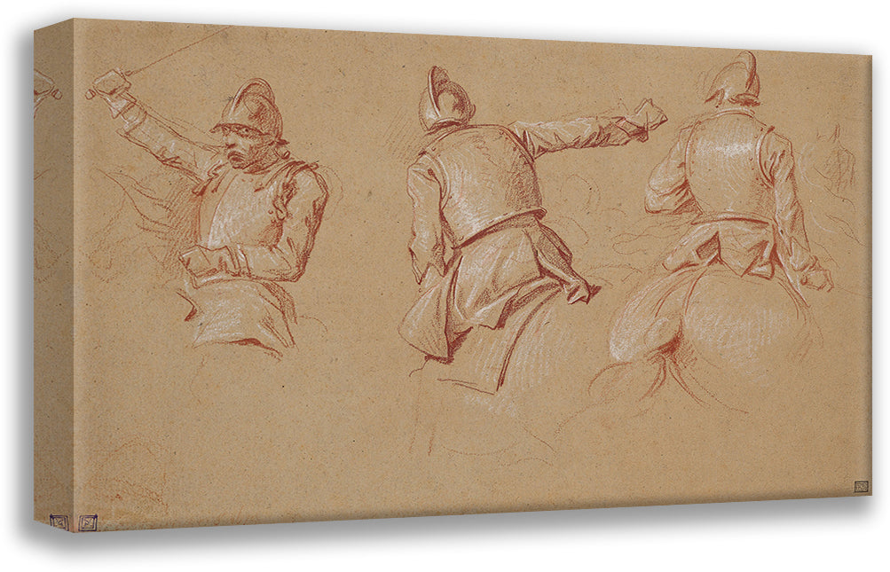 Three Soldiers Helmeted on Horseback