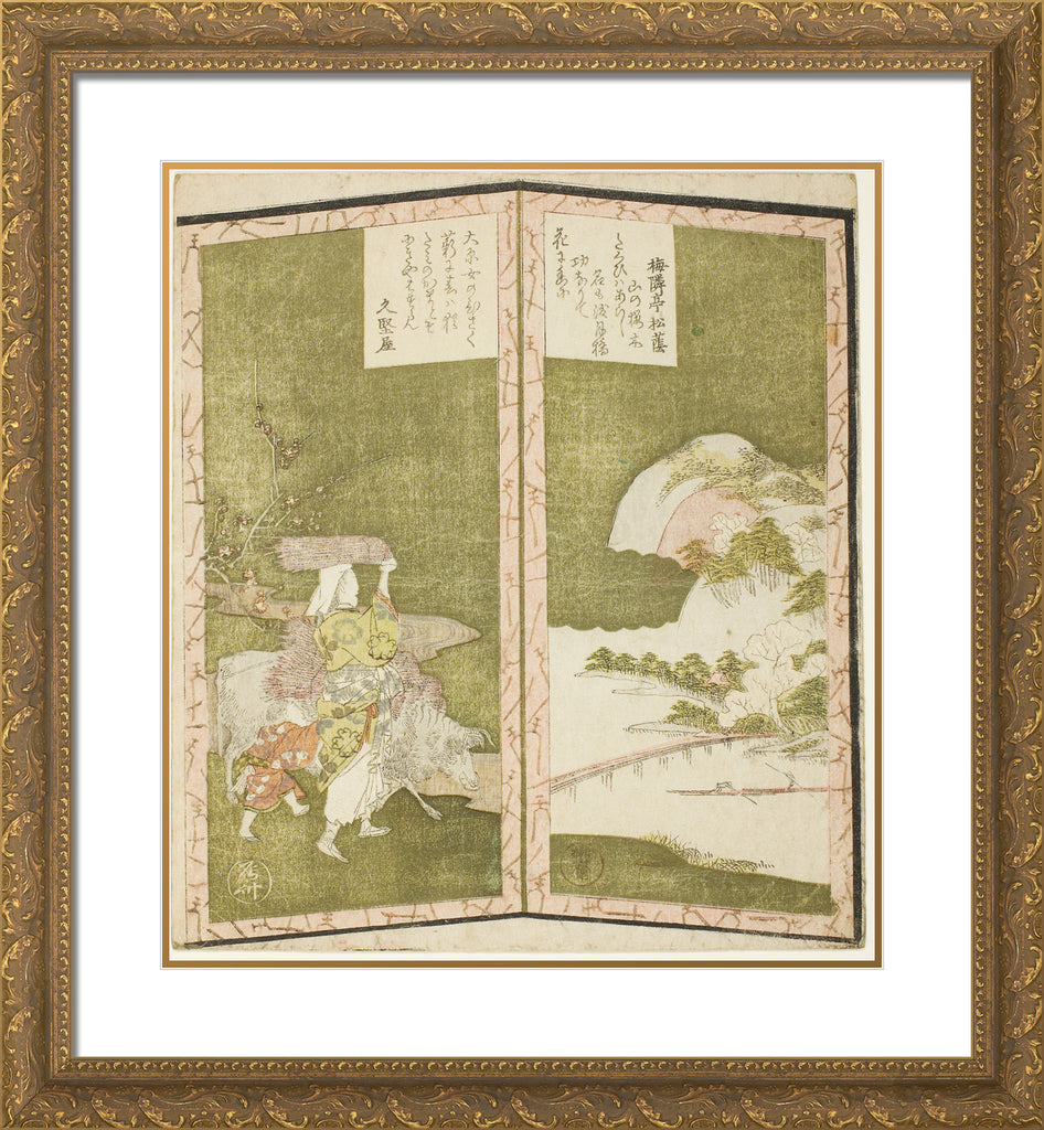 / Lacscape and woman from Ohara, from an untitled hexaptych depicting a pair of folding screens by Ryuryukyo Shinsai