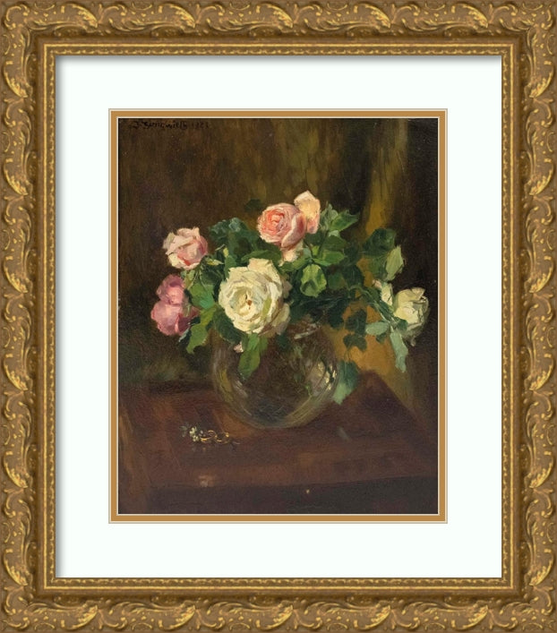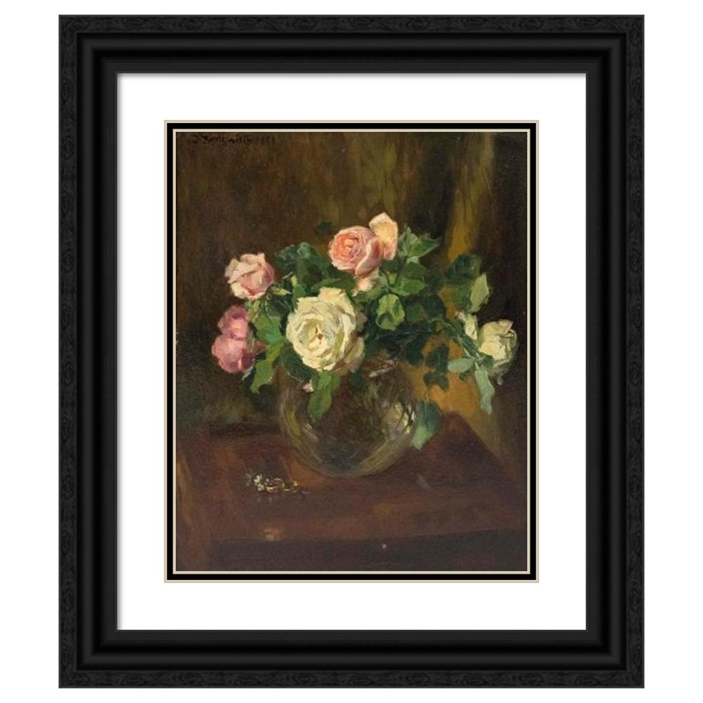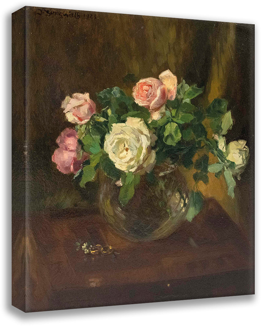 Still Life with Roses in Glass Vase and Two Wedding Rings