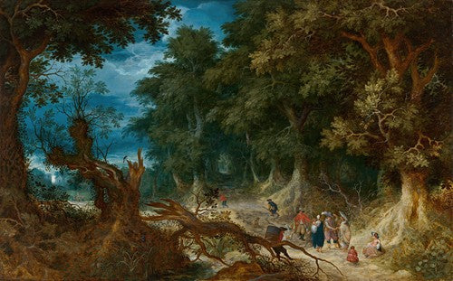 Wooded Landscape with Hunters and Fortune Teller (1612)