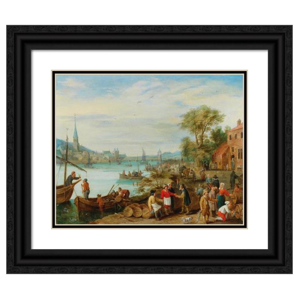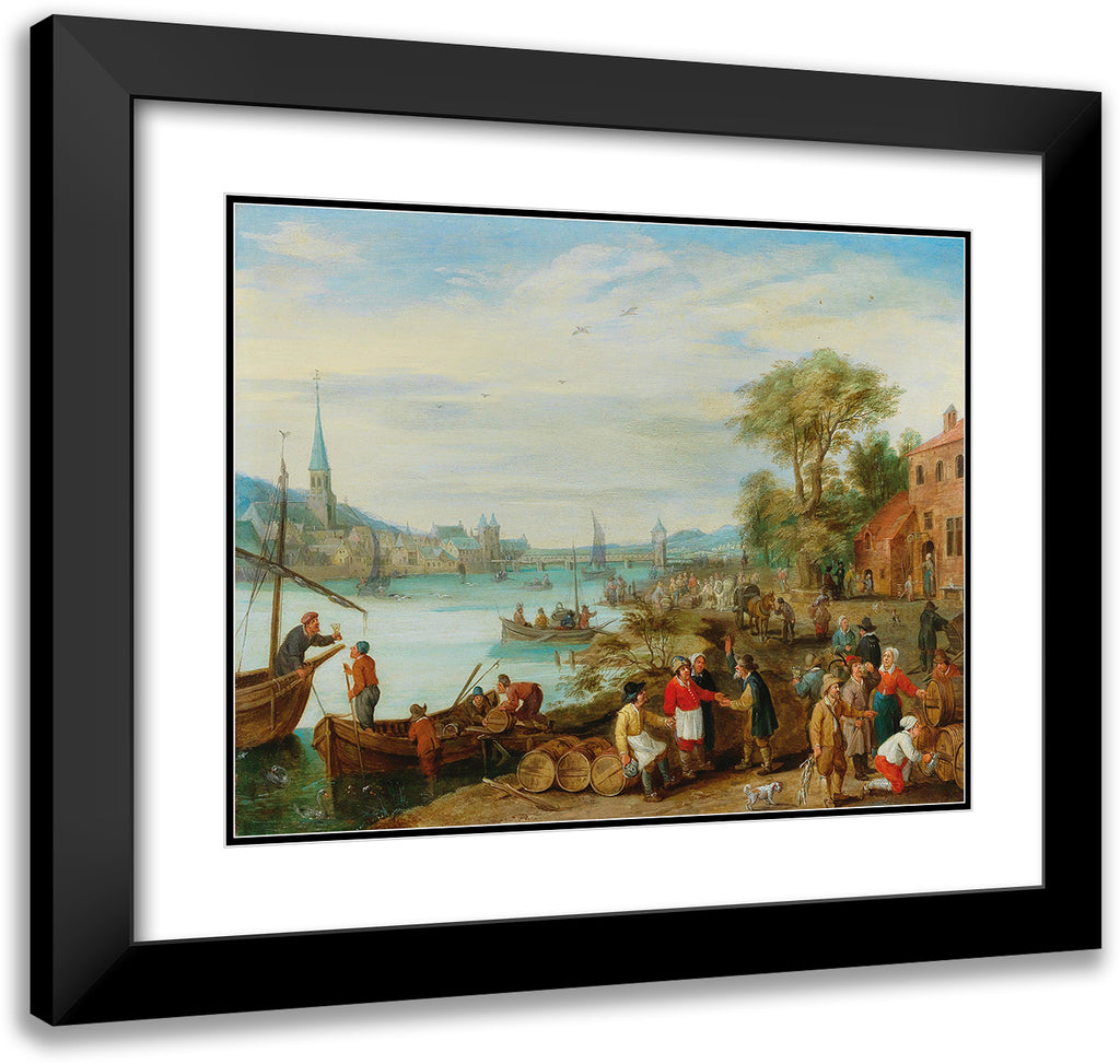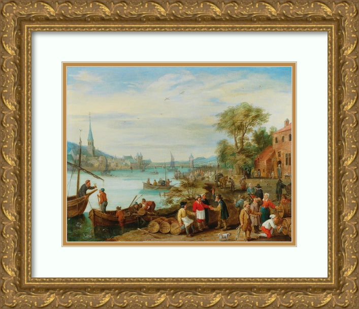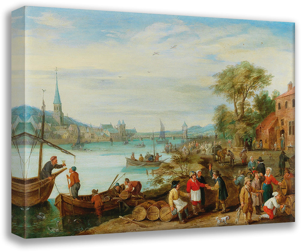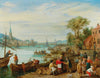 A River Landscape with a Harbour Scene