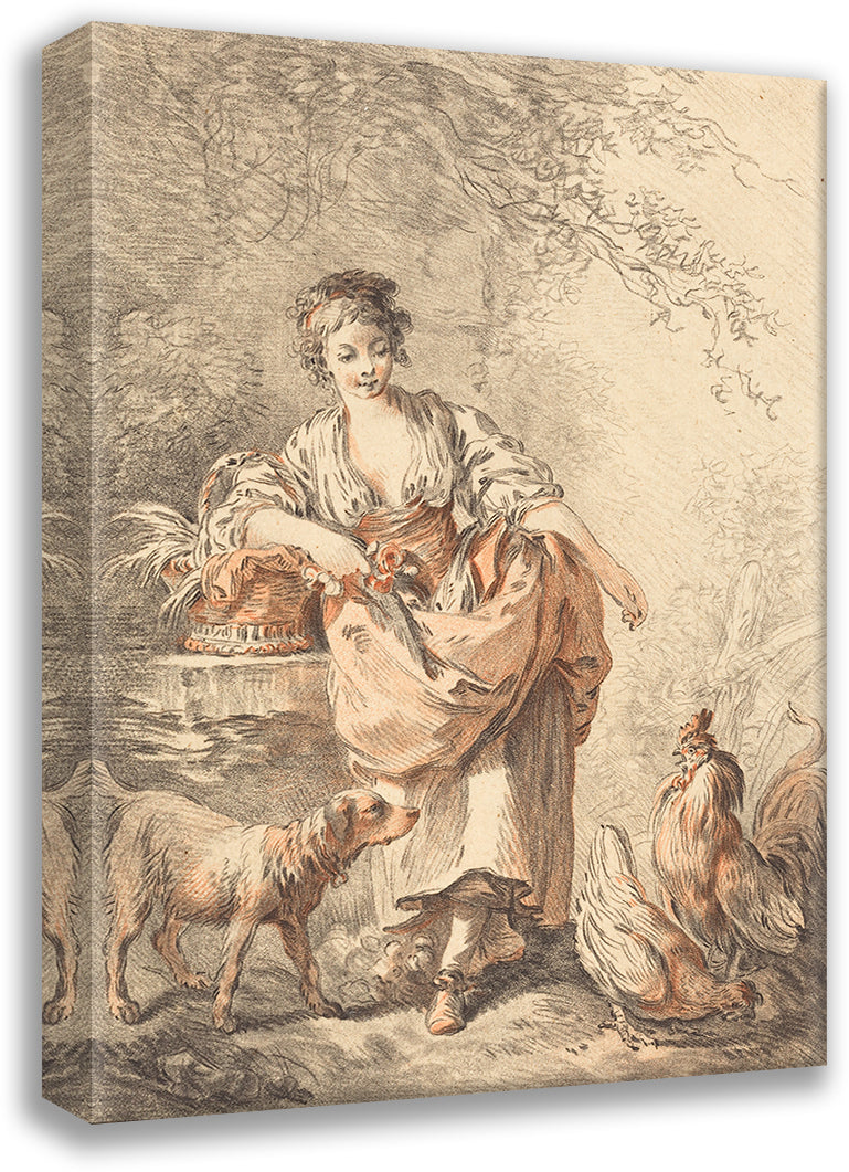 Woman Feeding Chickens
