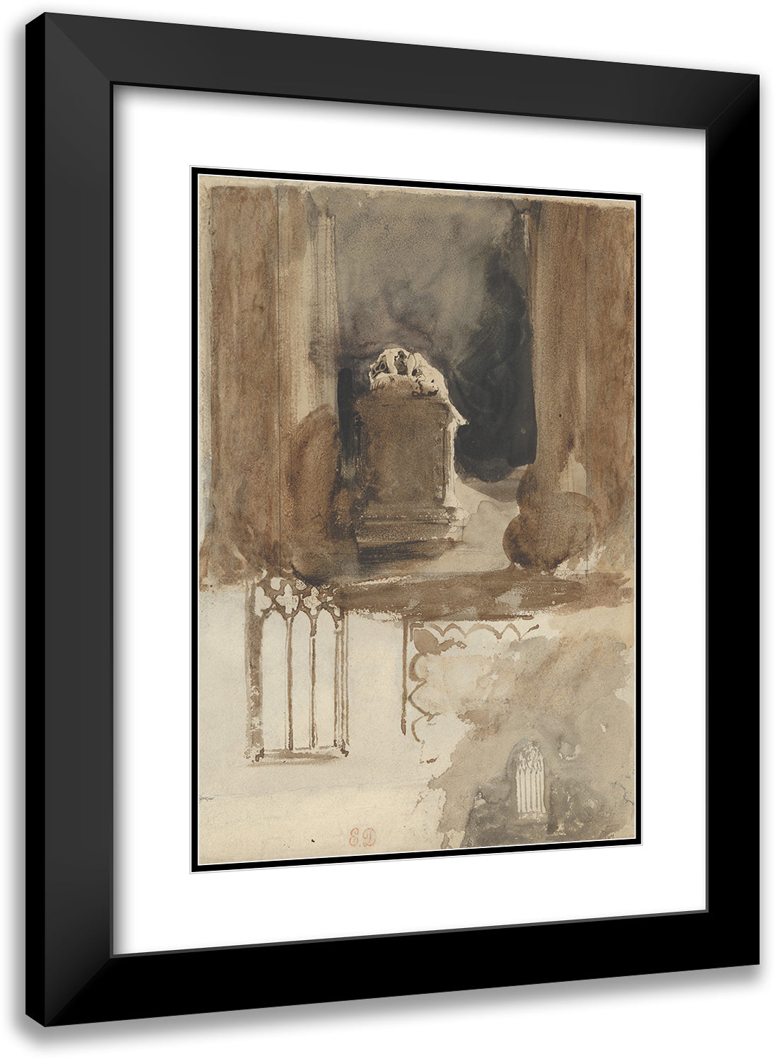A Tomb and Studies of Windows in the Church of Valmont Abbey (1829-31)