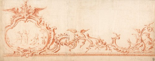Ornament Drawing with Cartouche, Putti, and Monkeys