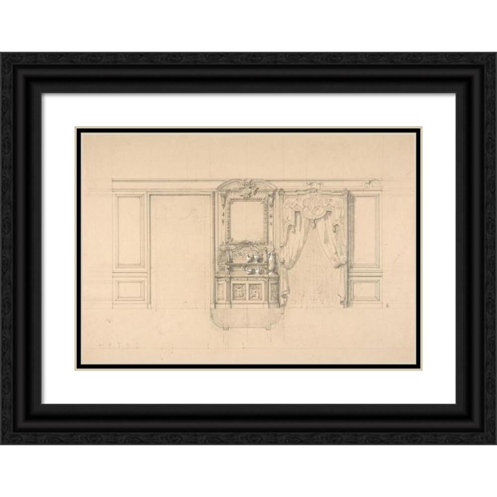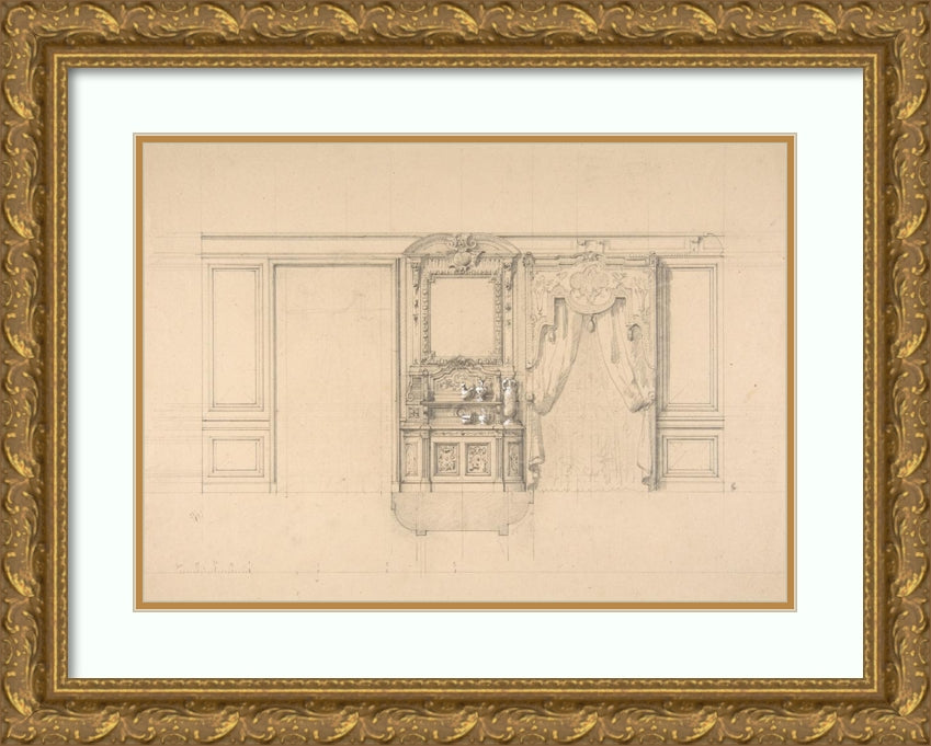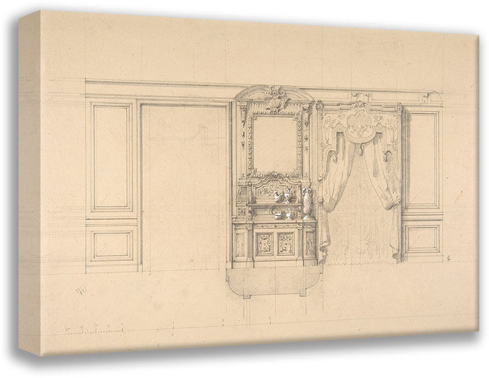 / Elevation of a Dining Room with a Carved Buffet and Window Draperies (19th Century)