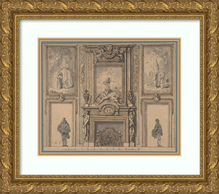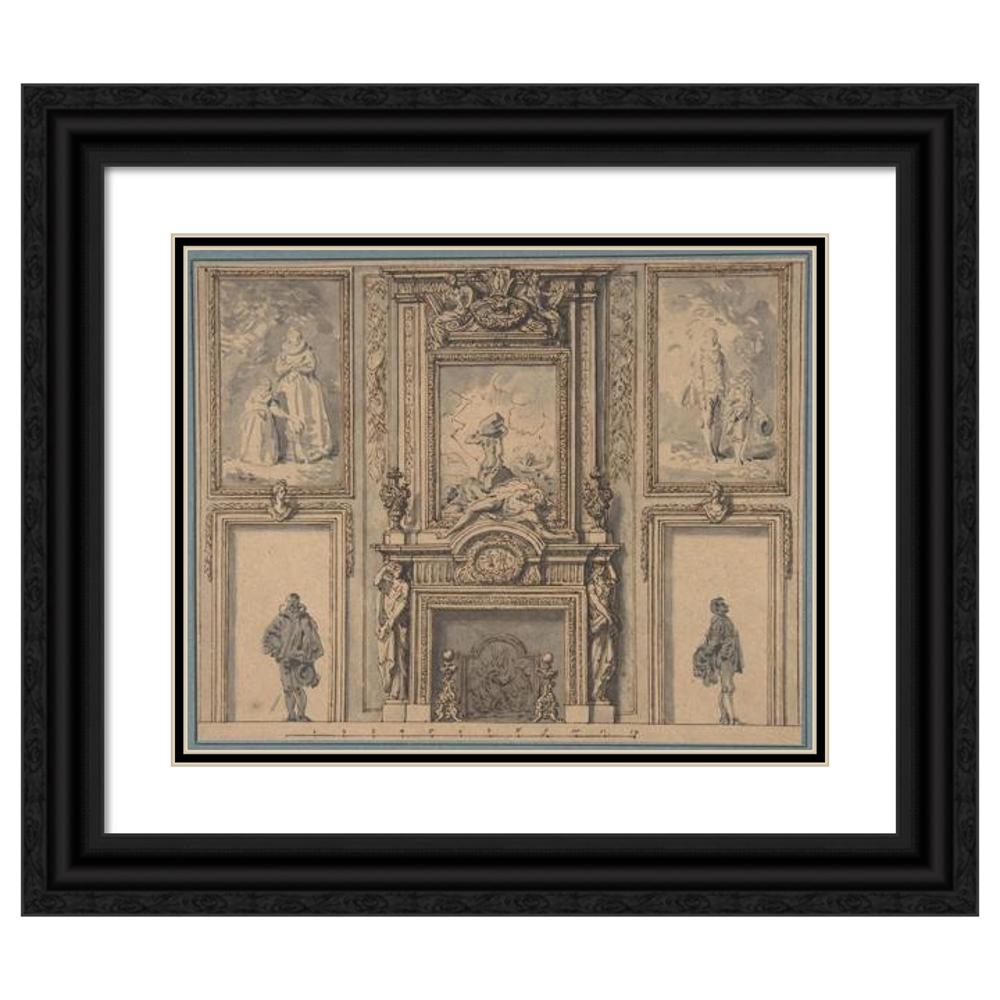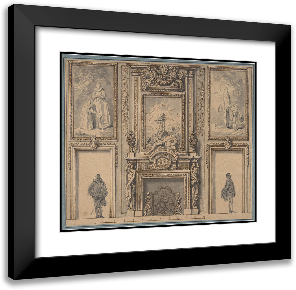 / Design for a Wall Decoration with Chimneypiece and Two Figures (ca. 1650-70)