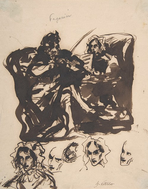 Paganini Playing and Studies of Heads (1820-35)