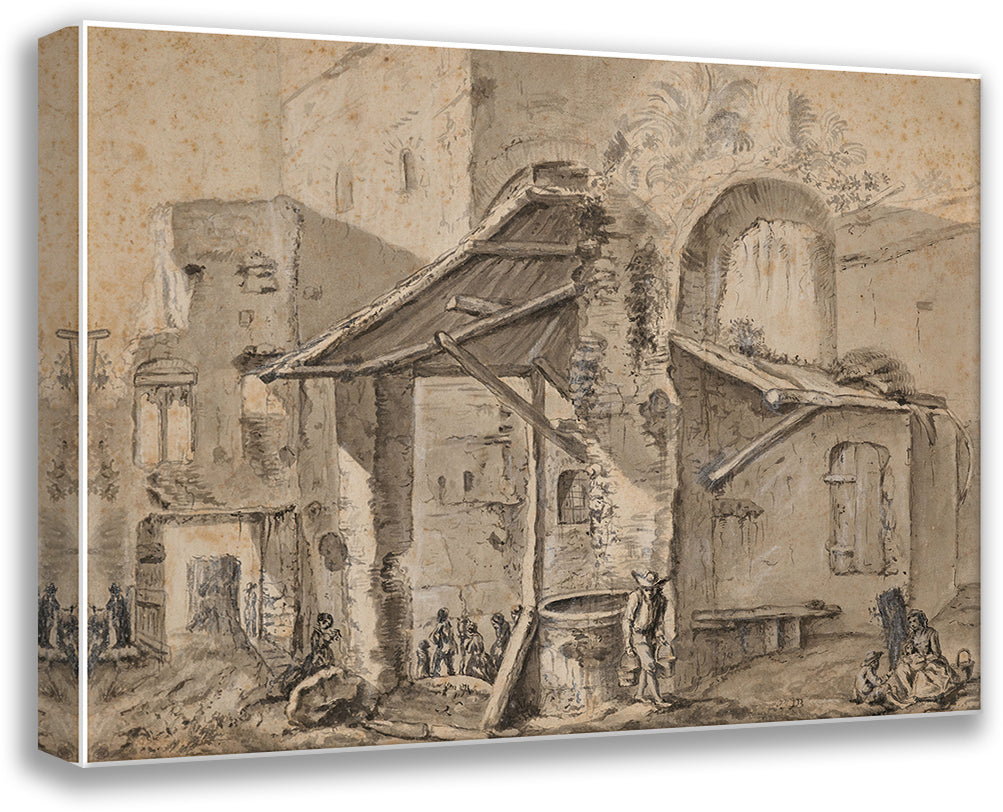 Characters in Front of Dwellings and Ruins