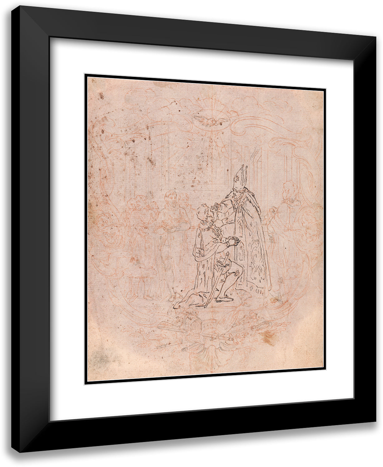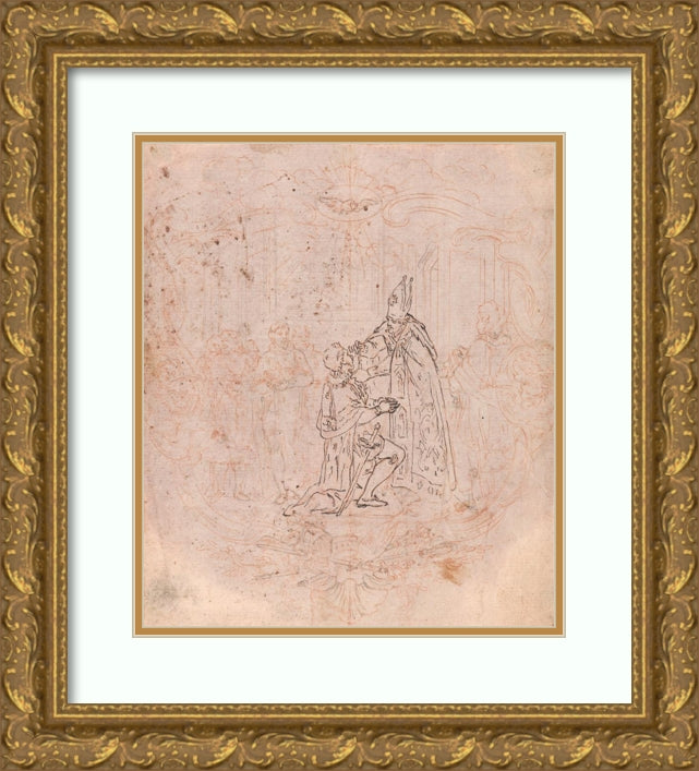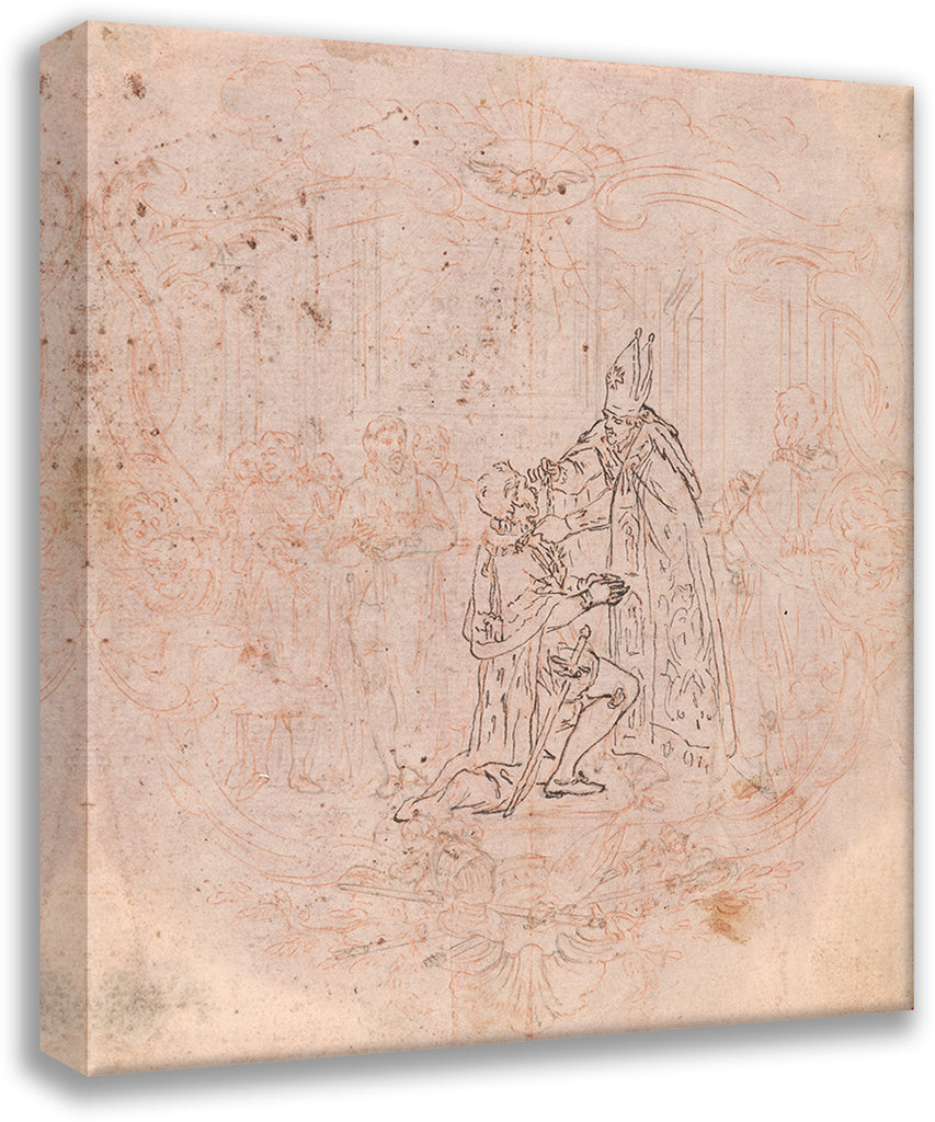 / Design for a Frontispiece; a Bishop Conferring an Honor, Scene Within a Cartouche