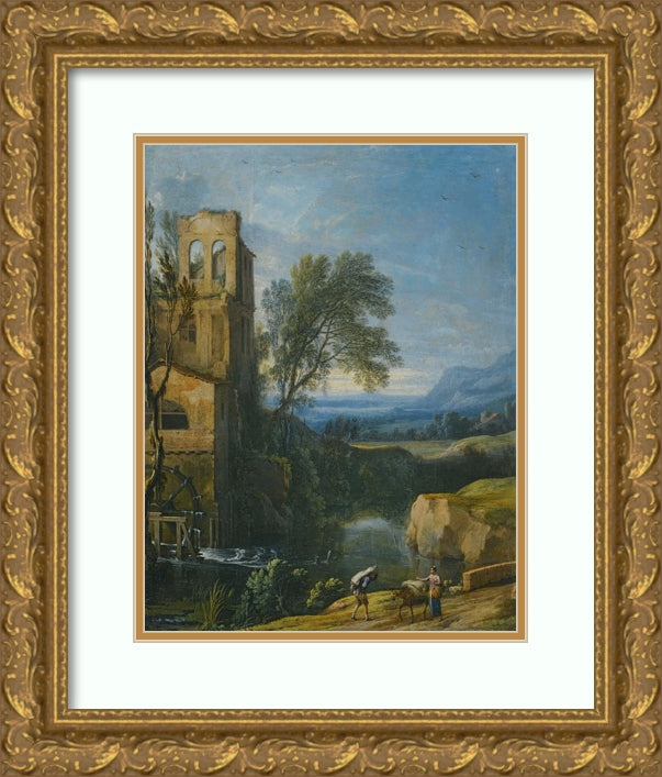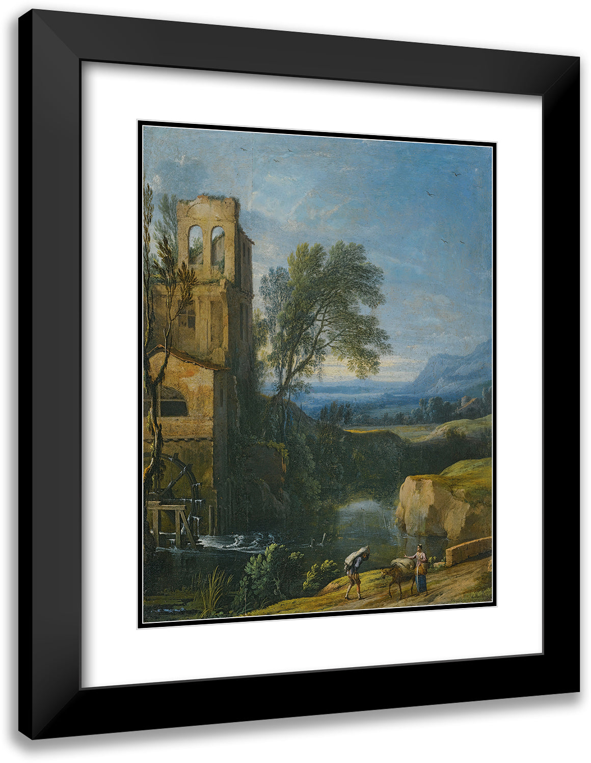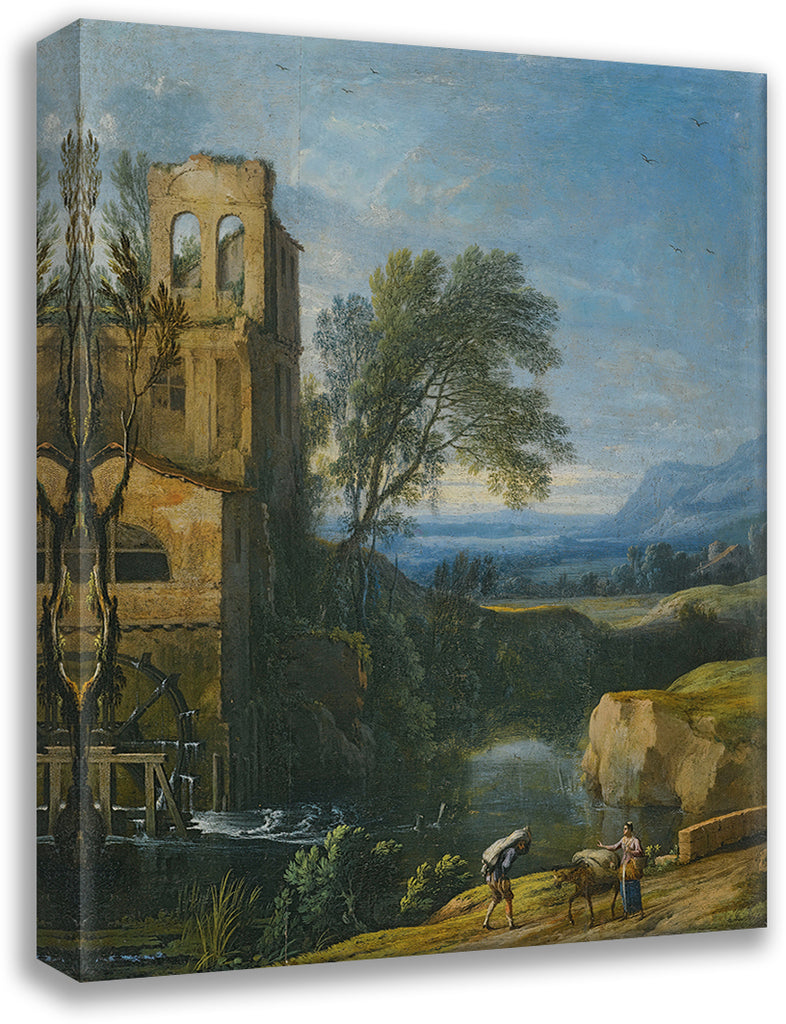 / A River Landscape with a Watermill to the Left and Figures with a Donkey in the Foreground