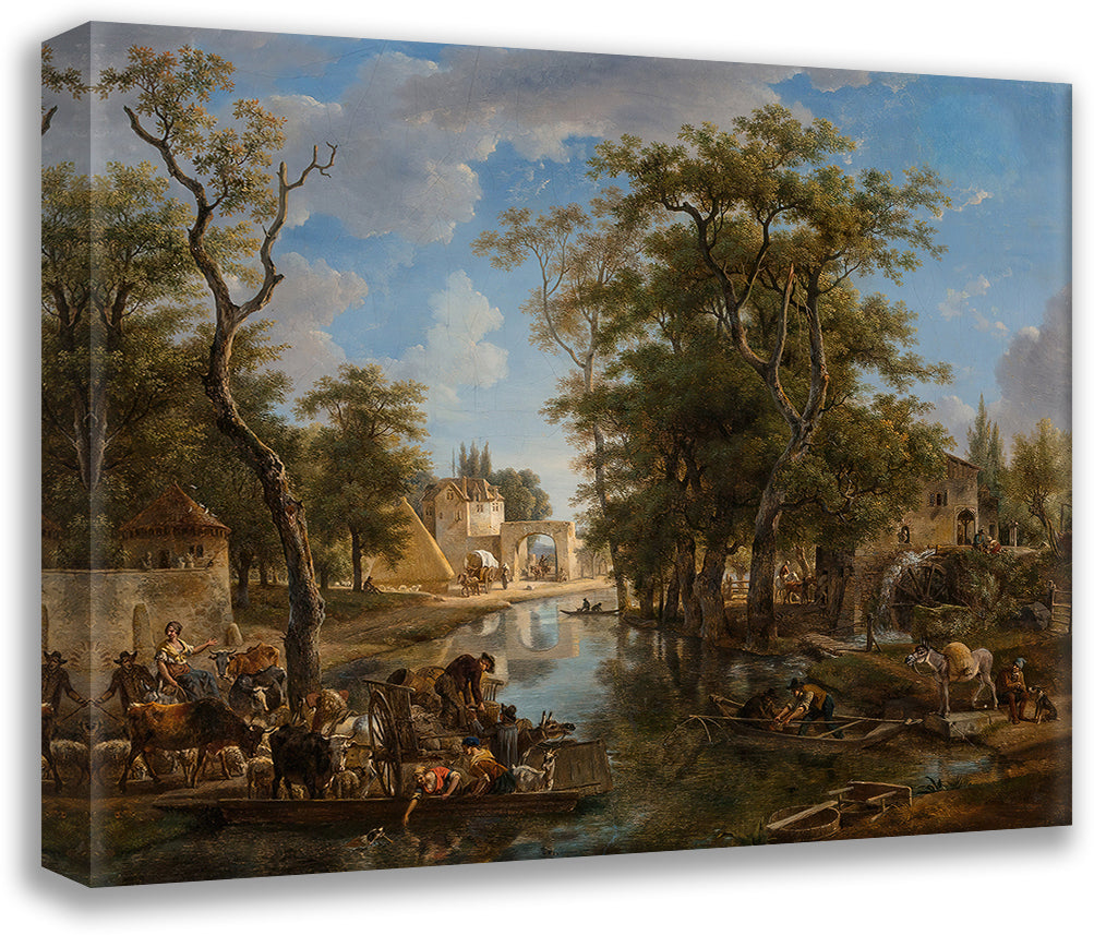 / A Lively Canal Scene with Ferries and Boats Conveying Townspeople and Animals